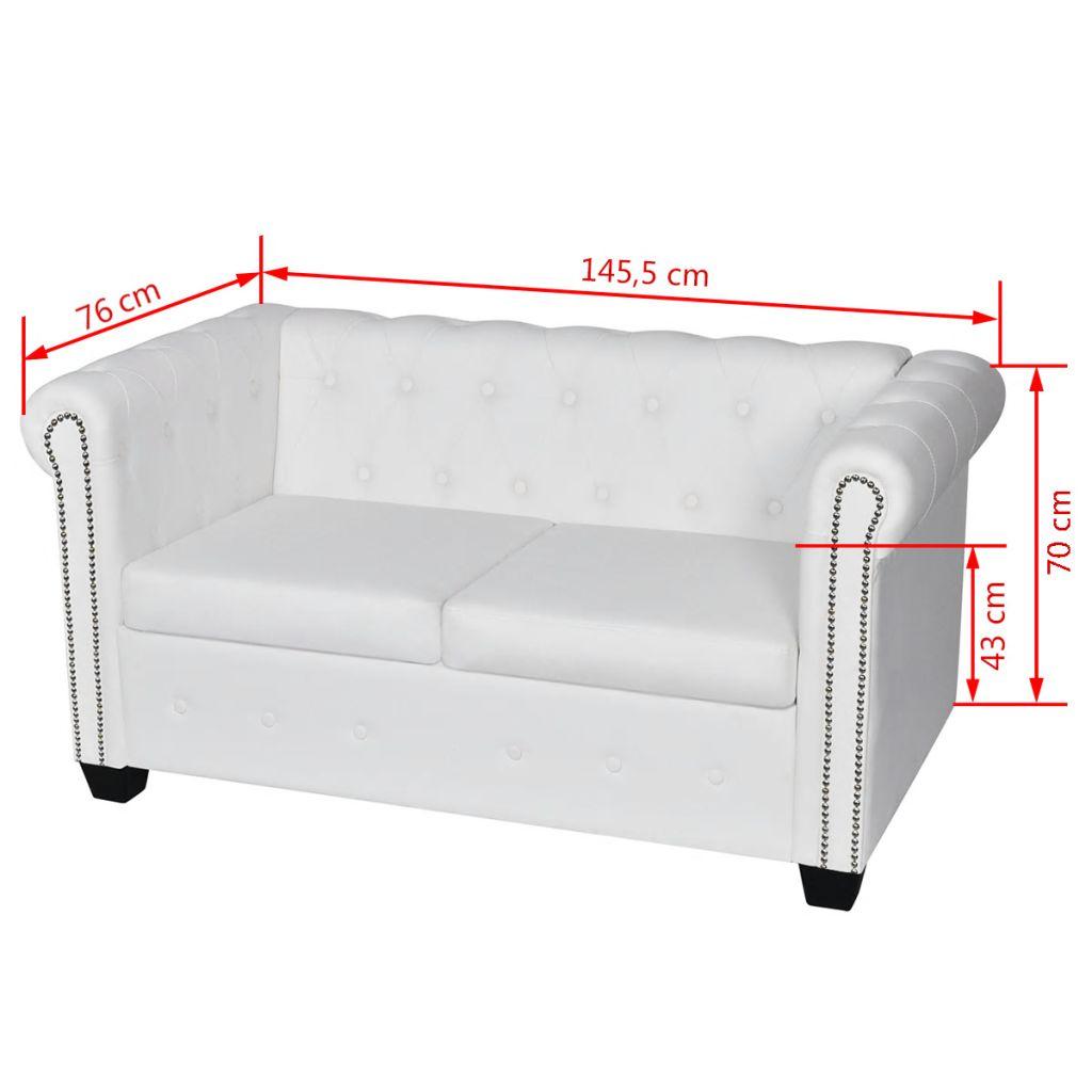 vidaXL Chesterfieldi diivan kahe istekohaga, kunstnahast, valge