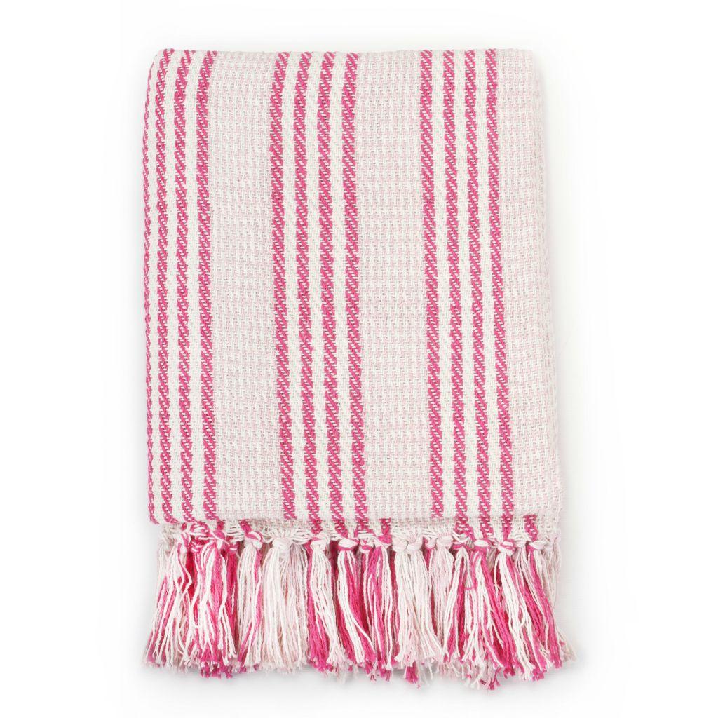 vidaXL puuvillane pleed, triibuline, 220 x 250 cm, roosa ja valge