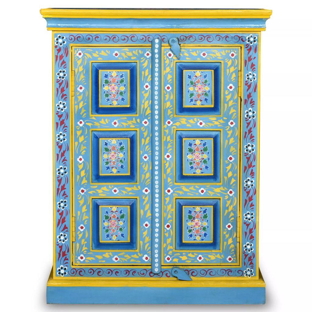 vidaXL kummutkapp, mangopuidust, türkiis, käsitsi maalitud