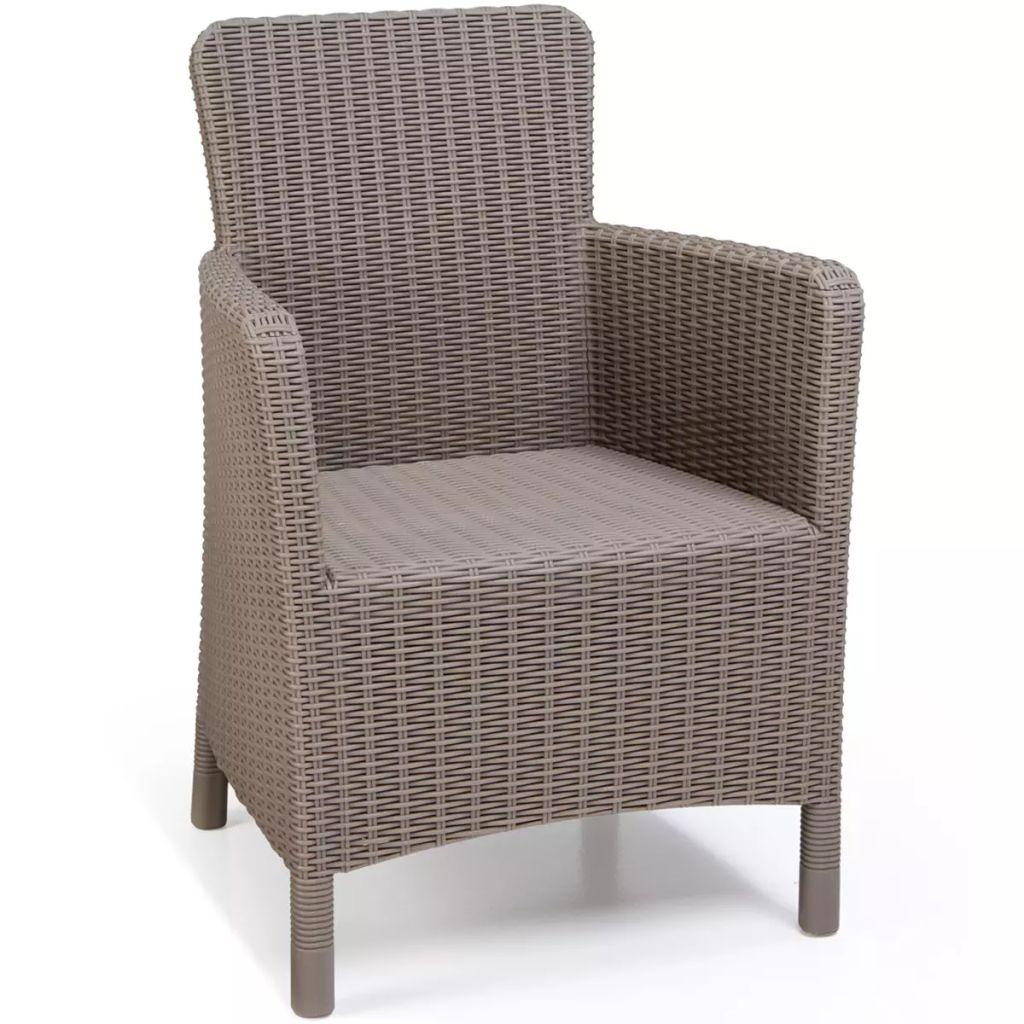 Allibert Trentoni söögitool on nii praktiline kui ka dekoratiivne lisandus teie aeda, rõdule või terrassile. Tänu kaasaegsele disainile sobib aia söögitool kõikide aiamööblikomplektide või välilaudadega. Tänu ilmastiku- ja veekindlale rotangiimitatsiooni disainiga materjalile on söögitooli lihtne puhastada ja see on kulumiskindel. Söögitoolil on vastupidav raam, kuid kuna see on kerge konstruktsiooniga, on seda lihtne liigutada. Kaasasolev eemaldatav istmepadi ei ole ainult mugav, vaid seda on ka lihtne pesta. Tähelepanu: Soovitame komplekti vihma, lume ja pakase eest kaitsta.