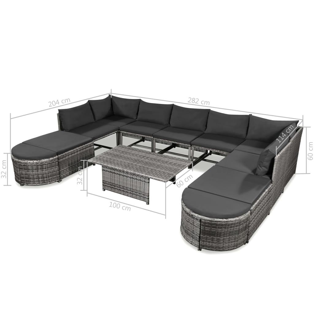 vidaXL 12-osaline aiamööblikomplekt patjadega, polürotang, hall