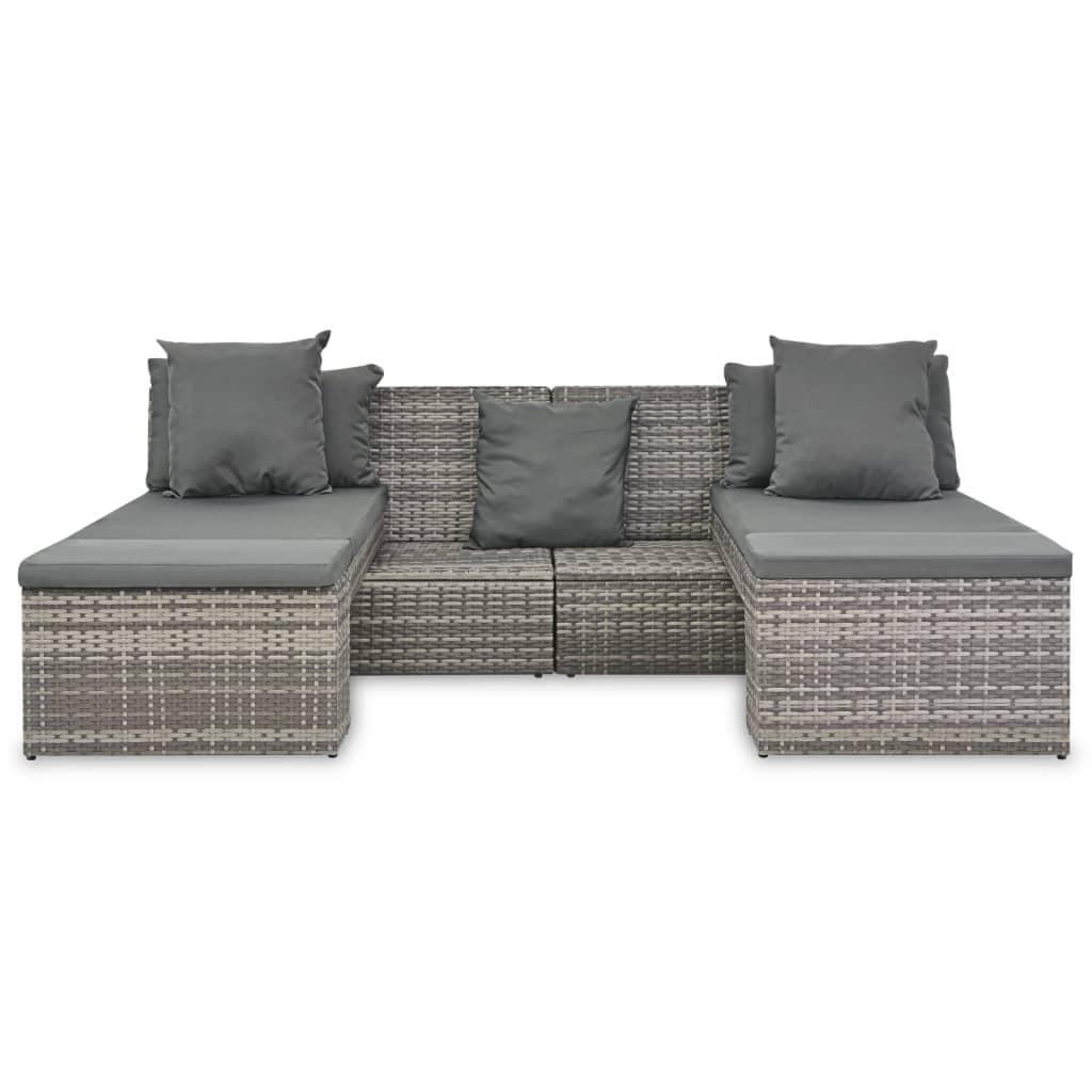 vidaXL aiamööblikomplekt patjadega, 4-osaline, polürotang, hall