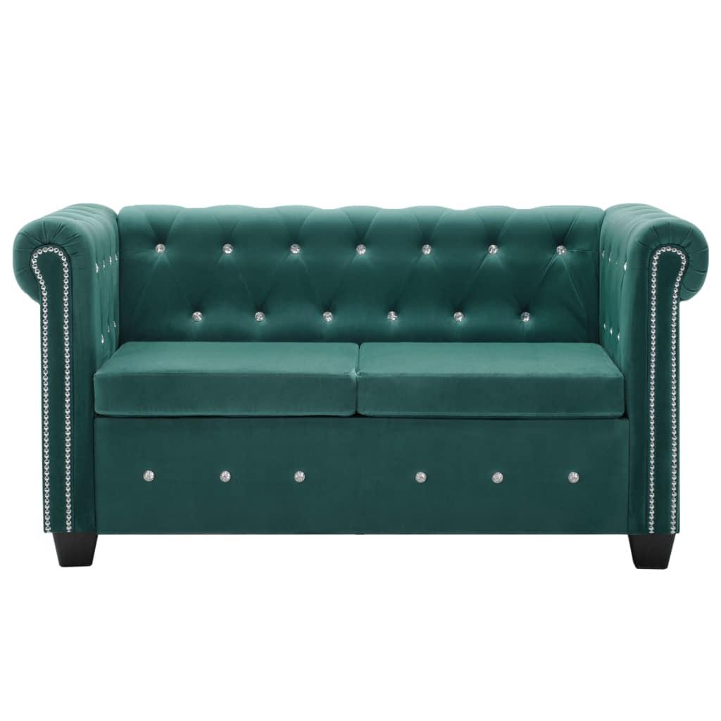 vidaXL 2-kohaline Chesterfield diivan, velvet 146 x 75 x 72 cm roheline
