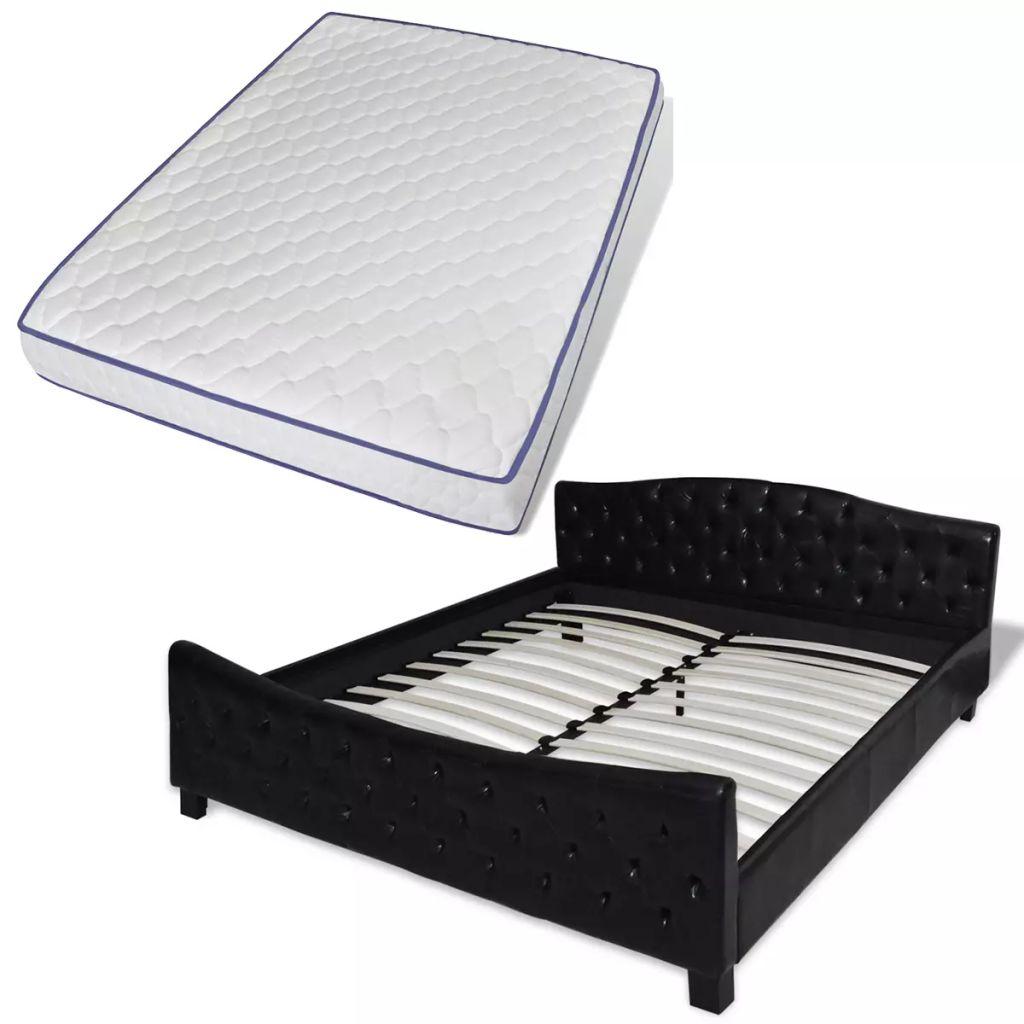 vidaXL voodi mäluvahust madratsiga, must, kunstnahk 180 x 200 cm