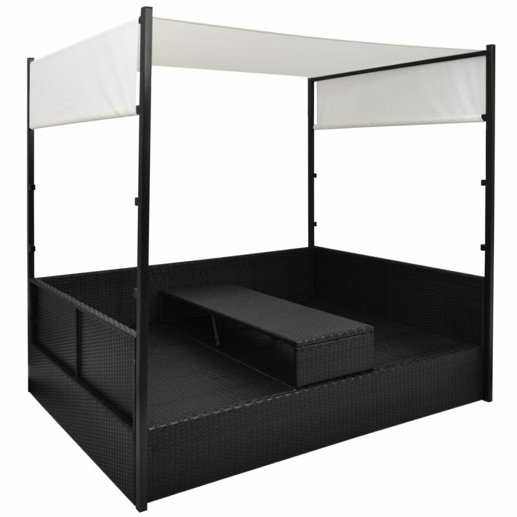 vidaXL lamamistool varikatusega, must, 190 x 130 cm, polürotang