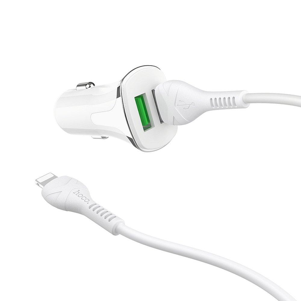 Mobiili lisaseade Hoco. HOCO car charger Universe double port QC3.0 with cable for iPhone Lightning 8-pin Z31 white