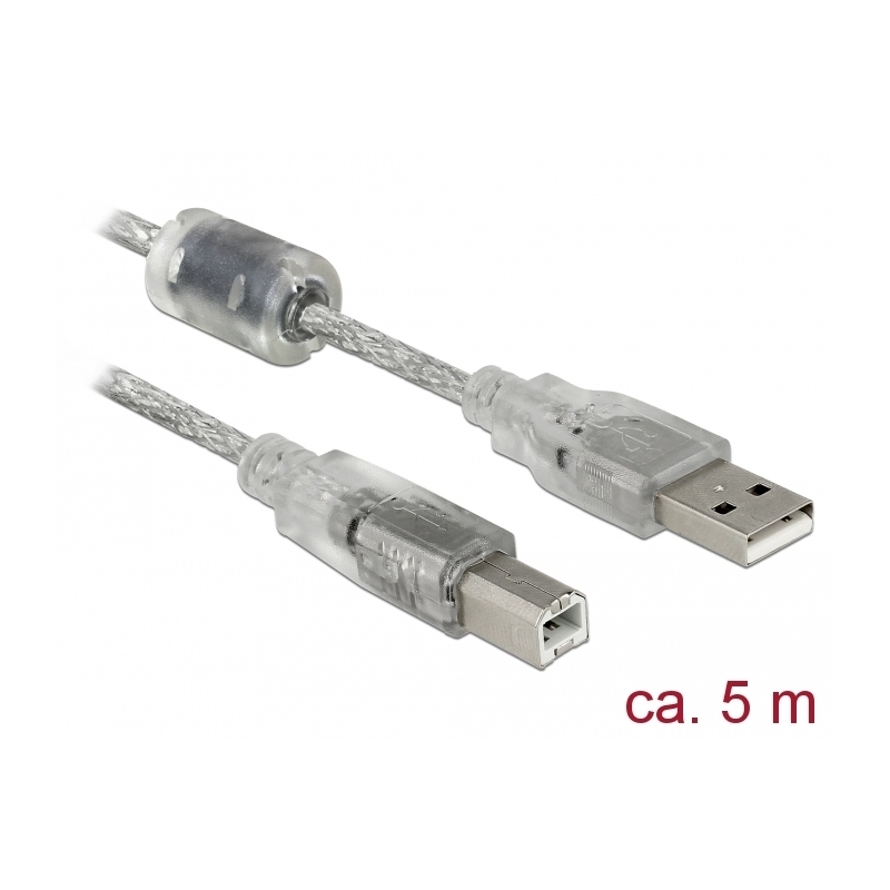 Delock 83896 USB Kabel USB 2.0 Typ-A Stecker / USB 2.0 Typ-B Stecker 5 m transp