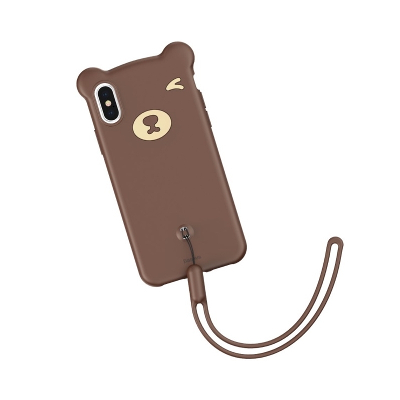 Mobiili lisaseade Baseus Flexible Silicone Back Cover Case with Wrist Strap for Apple iPhone XS Max Brown Bear