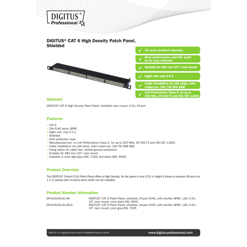 Võrguseade Digitus Patchpanel 1HE 16-Port Cat5e shielded gray