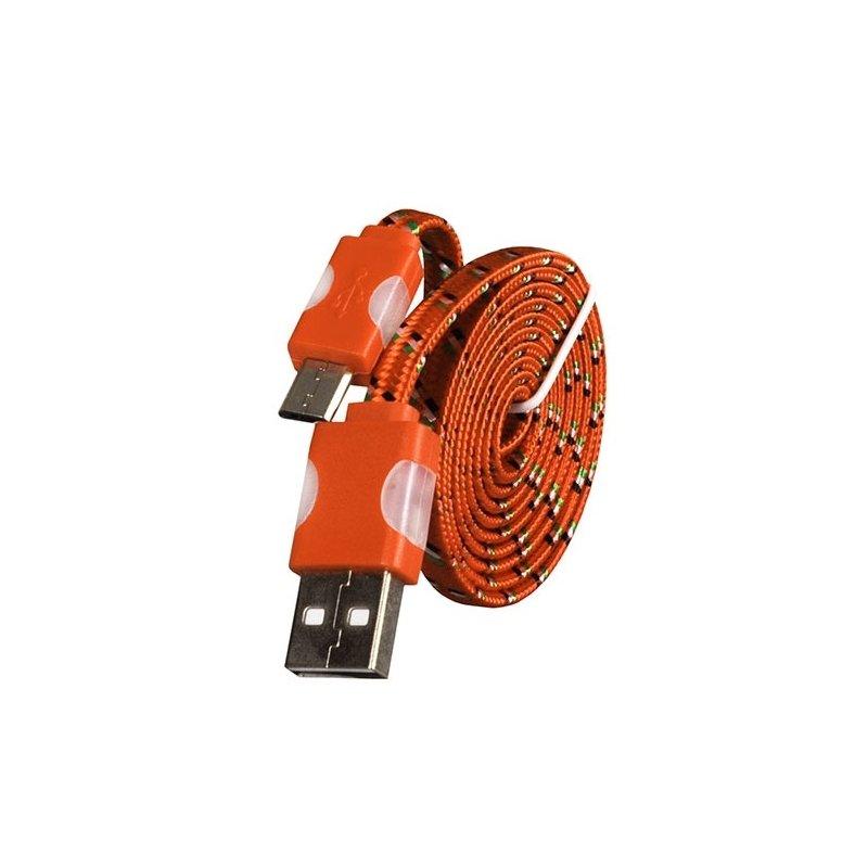 Etui Super Flat Wired 1m Led Flashing Light Universal Micro USB Cable Orange