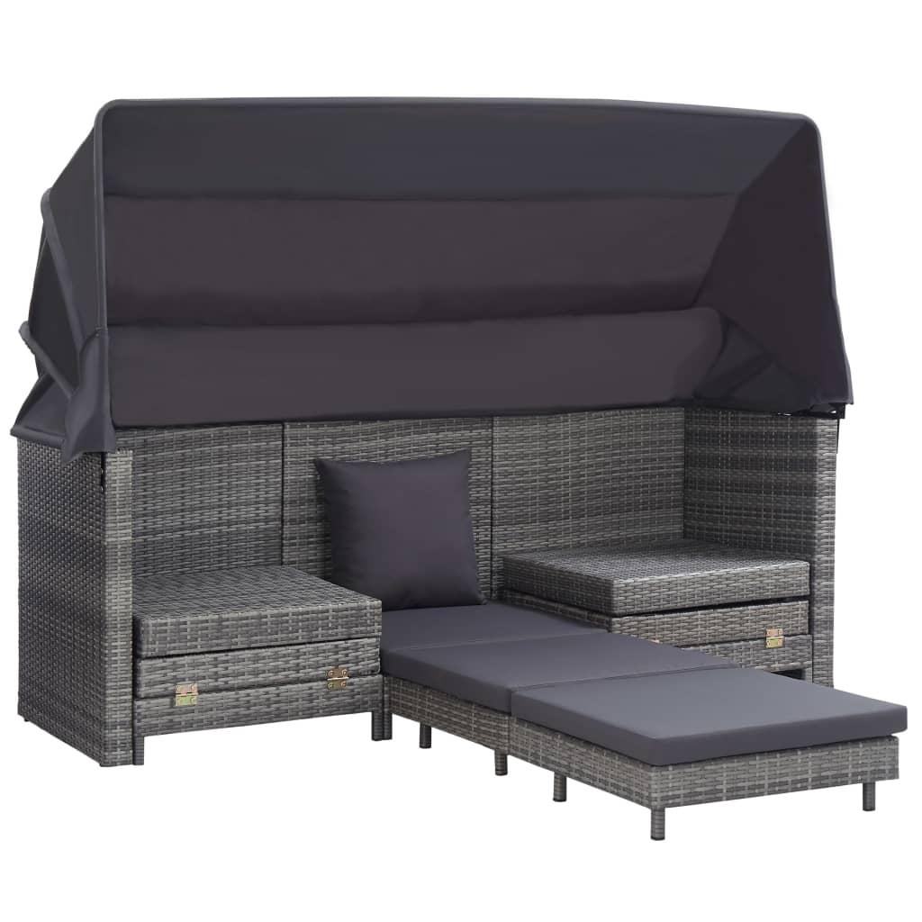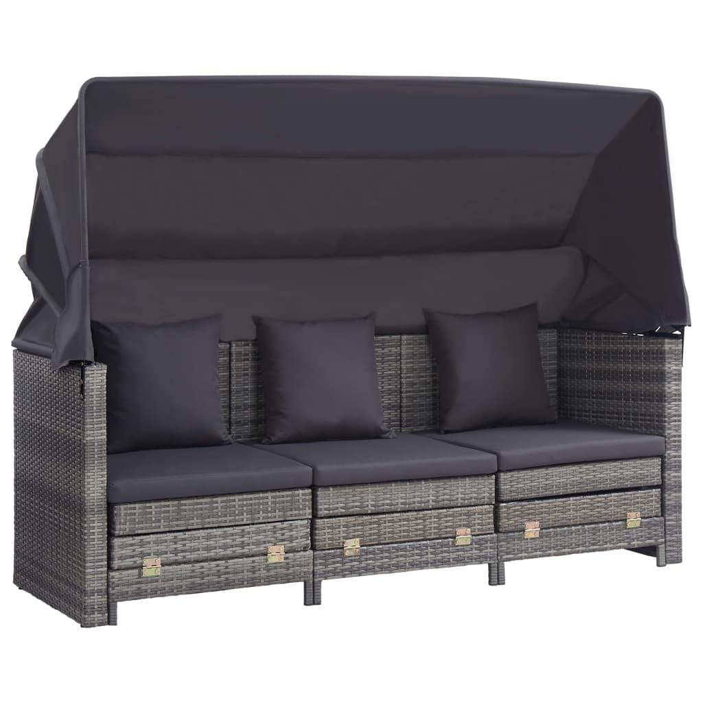 vidaXL laiendatav 3-kohaline diivanvoodi katusega polürotang, hall