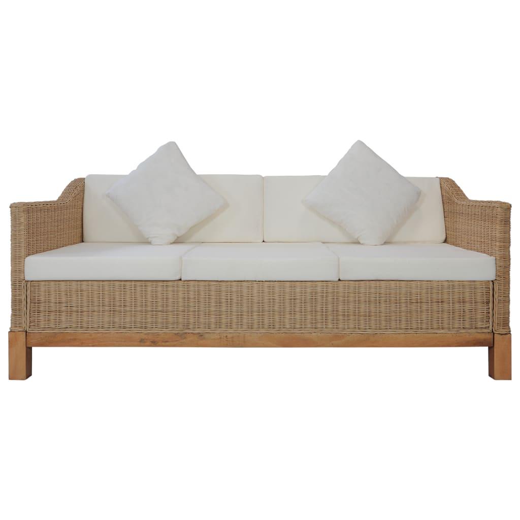 vidaXL 3-kohaline diivan patjadega, naturaalsest rotangist