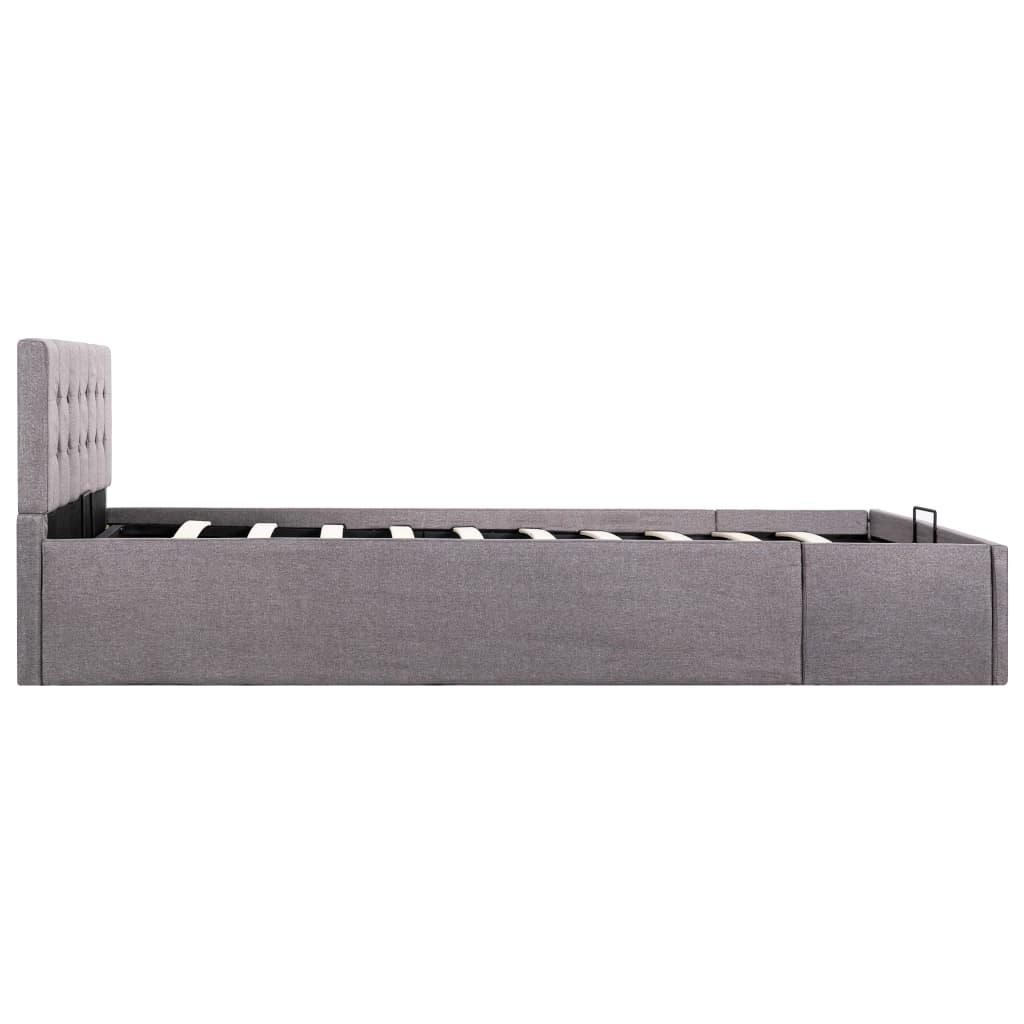 vidaXL hüdrauliline panipaigaga voodiraam pruunikas kangas 120x200 cm