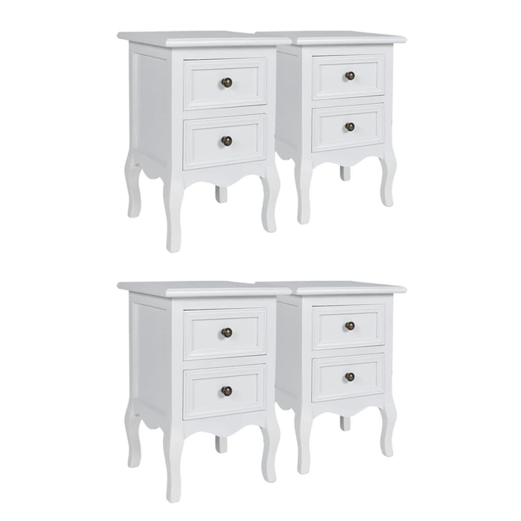 Neljast vanaaegses stiilis öökapist koosneval komplektil on täissuuruses sahtlid, et saaksite magamistoas vajalikke esemeid käepärast hoida. Kummalgi kapil on kaks sahtlit. Läbipaistva lakiga kaetud ehtsast puidust sahtlid muudavad öökapid veelgi elegantsemaks. Öökapp on viimistletud vastupidava valge MDFiga. Kapil on ka kitsenevad jalad ja harjatud niklist kapinupud. Komplekti kuulub neli öökappi. Pange tähele: kuna mööbel on valmistatud puidust ja värvitud valgeks ning see on ka käsitsi meisterdatud, võib esineda ebatäiuseid.• Tarne 5–7 päeva kõikjale Eestis • Turvalised maksemeetodid: Paypal, pangaülekanne, deebet- ja krediitkaardid, Trustly • Uhiuus toode. 2-aastane garantii • Tasuta tagastamine 30 päeva jooksul