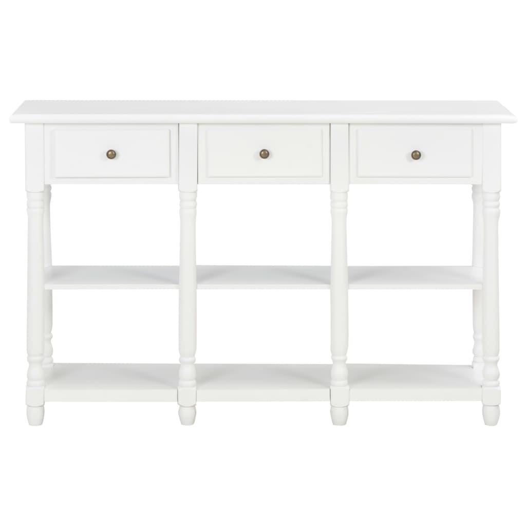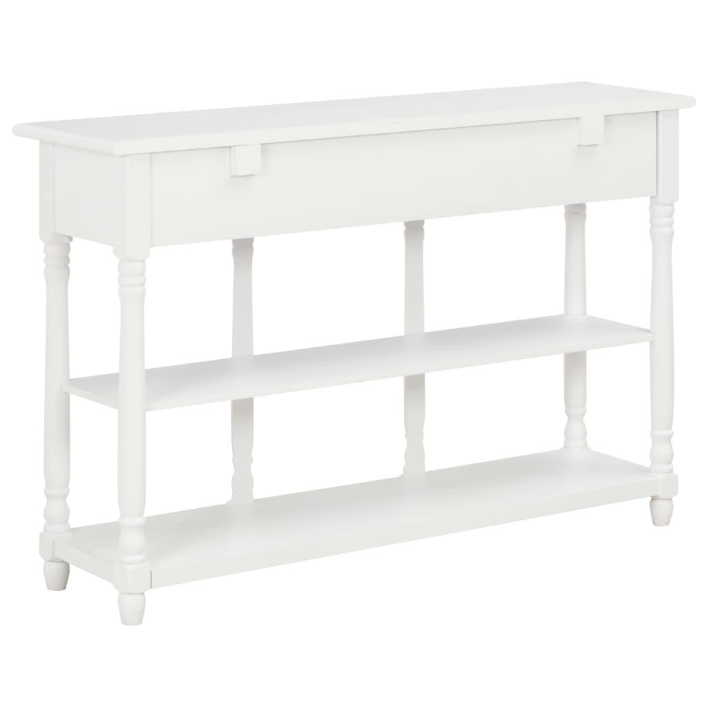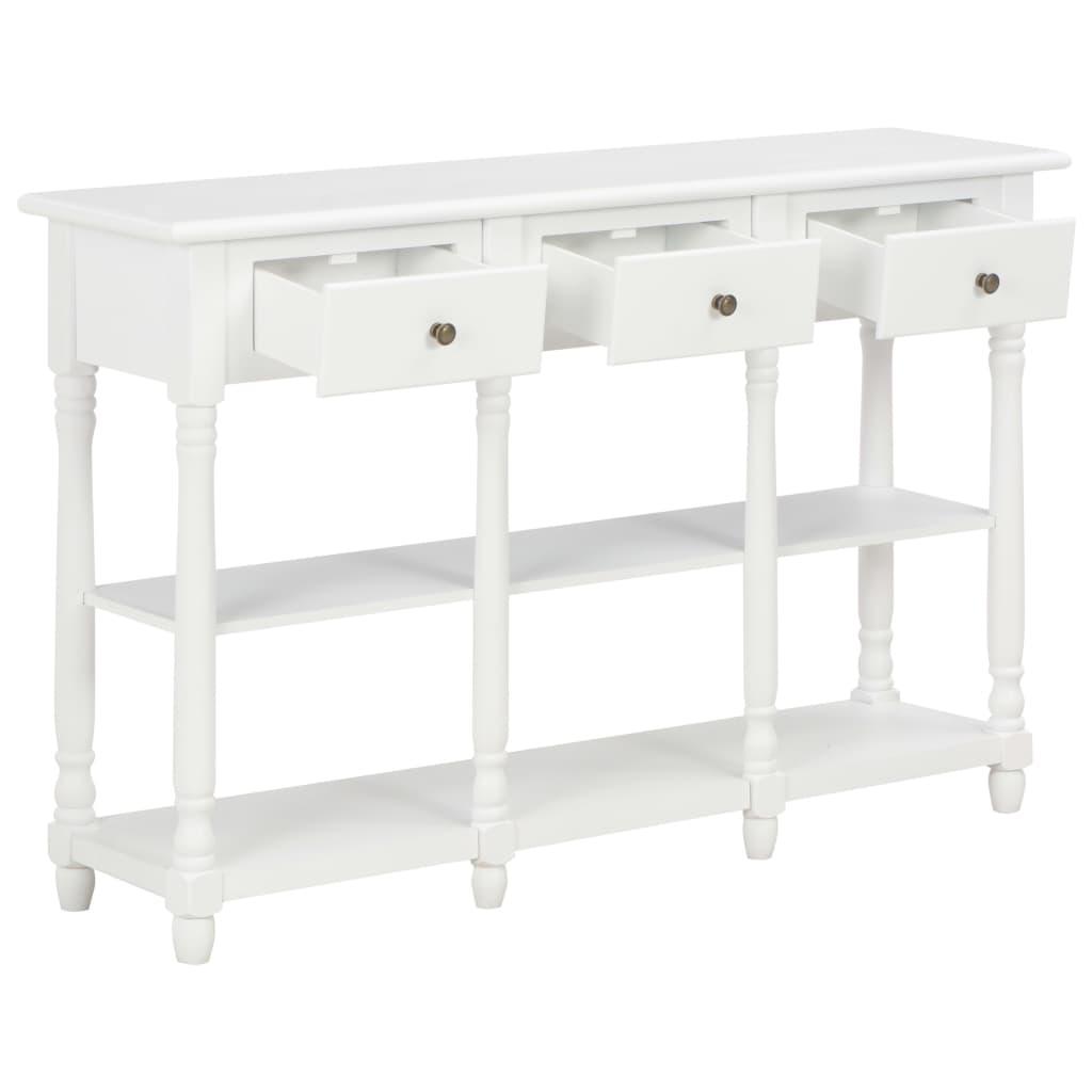 Lisage klassikalise konsoollauaga koju elegantsi! MDFist ja toekast männipuidust valmistatud konsoollaud annab interjöörile suurepärast täiendust. Seda saab kasutada ka külglaua või külgkapina. Laual on tugev MDFist lauaplaat, kuhu saate panna dekoratiivesemed, näiteks puuviljakorvid või vaasid. Toekad männipuidust jalad tagavad stabiilsuse ja vastupidavuse, tänu millele peab see aastaid vastu. Lisaks on kolmes sahtlis rohkelt ruumi, kus saate väiksemaid esemeid organiseeritult ja käeulatuses hoida. Kahel riiulil on täiendavalt ruumi jalatsite ja muude esemete hoiustamiseks.• Tarne 5–7 päeva kõikjale Eestis • Turvalised maksemeetodid: Paypal, pangaülekanne, deebet- ja krediitkaardid, Trustly • Uhiuus toode. 2-aastane garantii • Tasuta tagastamine 30 päeva jooksul