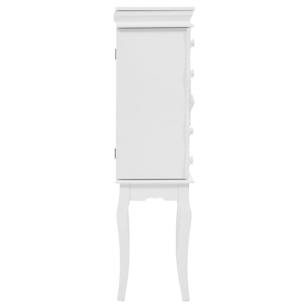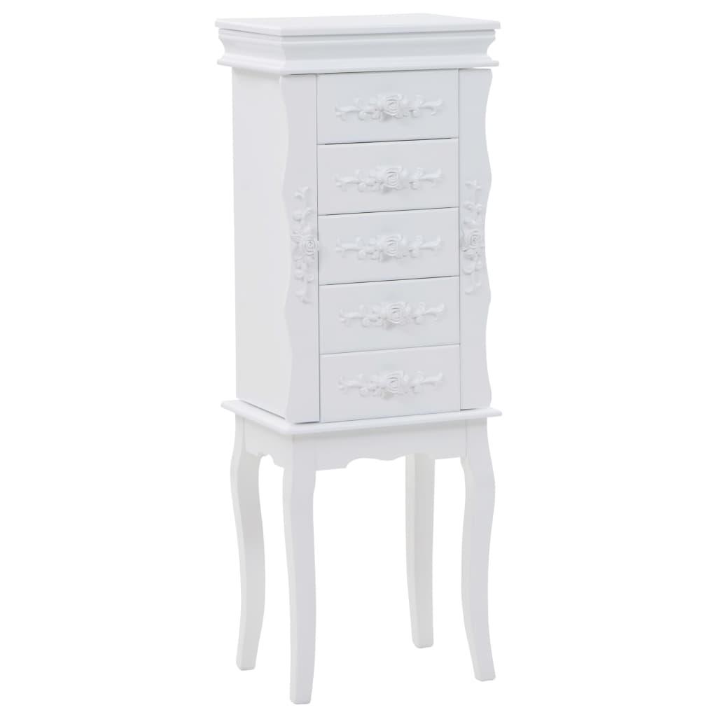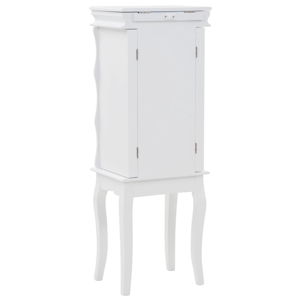 Eraldiseisev ehtekapp on suurepärane kõrvarõngaste, kaelakeede, käevõrude ja muude ehete hoiustamiseks. Peen ehtekarp on valmistatud keskmise tihedusega puitkiudplaadist (MDF) ja selle neli jalga on valmistatud männipuidust, mis muudab selle tugevaks ja vastupidavaks. Kappi on lihtne puhastada ja hooldada. Ehtekappi on lihtne kokku panna.• Tarne 5–7 päeva kõikjale Eestis • Turvalised maksemeetodid: Paypal, pangaülekanne, deebet- ja krediitkaardid, Trustly • Uhiuus toode. 2-aastane garantii • Tasuta tagastamine 30 päeva jooksul