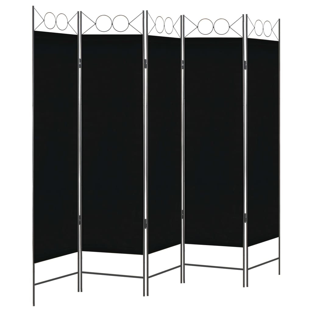 vidaXL 5 paneeliga ruumijagaja, must, 200 x 180 cm