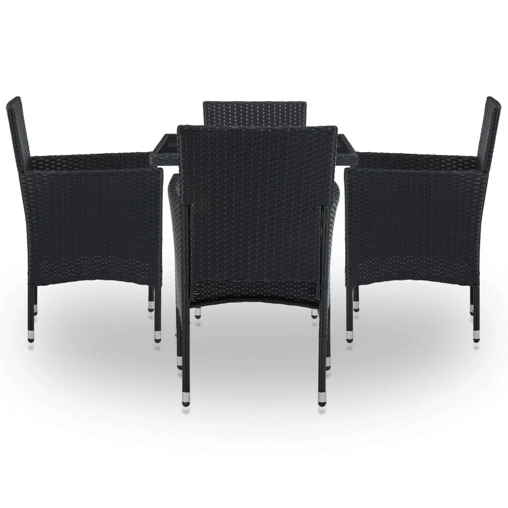 vidaXL 5-osaline aiamööblikomplekt, must, polürotang ja klaas
