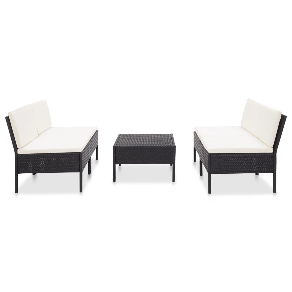 vidaXL 5-osaline aiadiivanikomplekt patjadega, polürotang, must