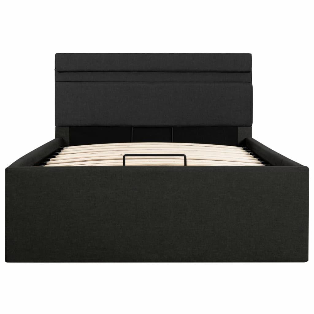 vidaXL hoiukastiga voodiraam LED, tumehall, kangas, 100 x 200 cm