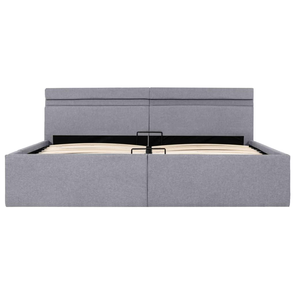 vidaXL hoiukastiga voodiraam LED, helehall, kangas, 180 x 200 cm