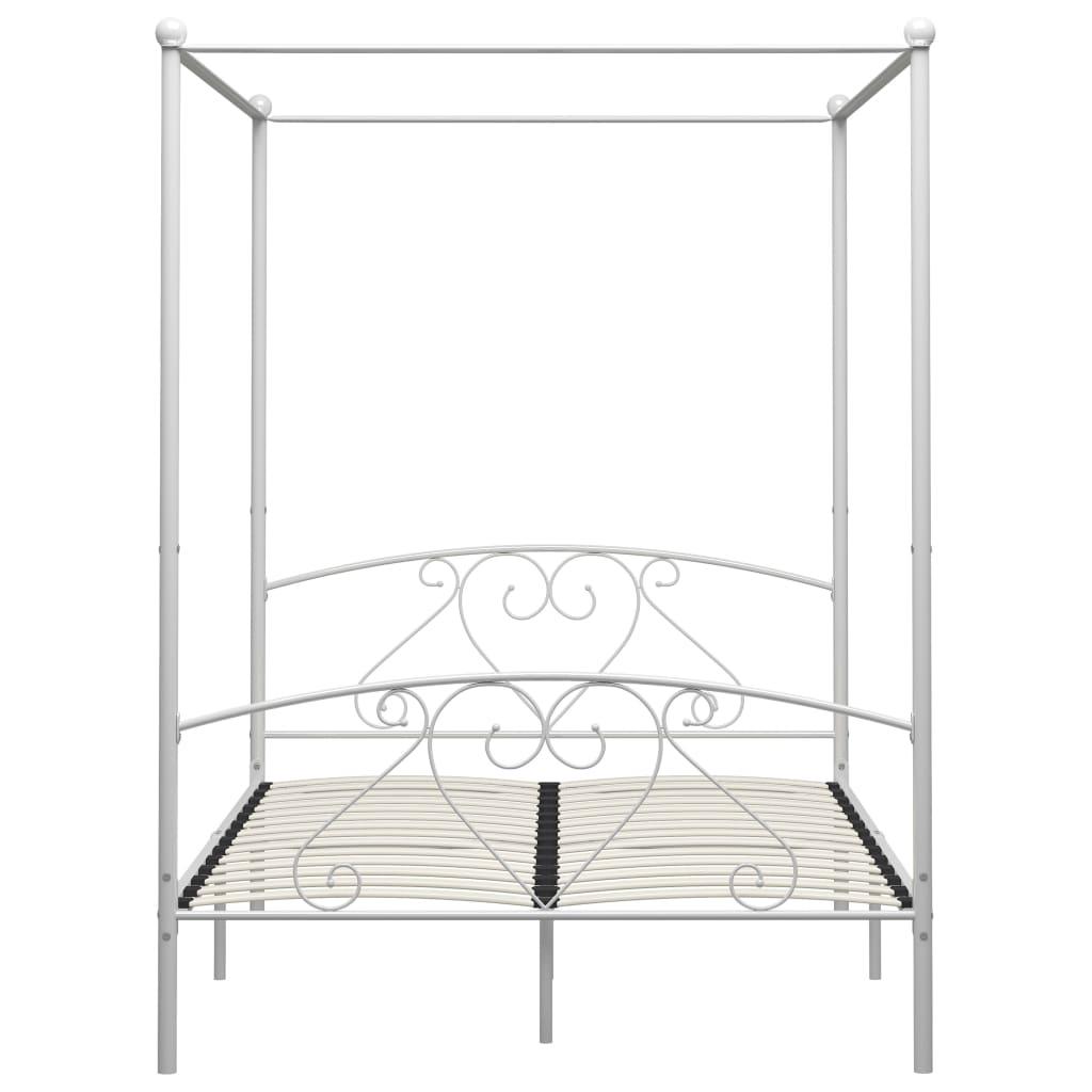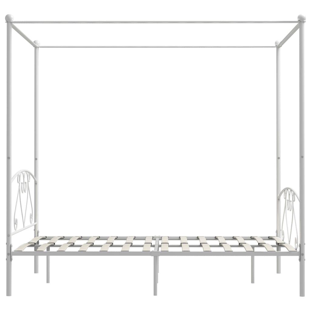 vidaXL baldahhiiniga voodiraam, valge, metall, 160 x 200 cm