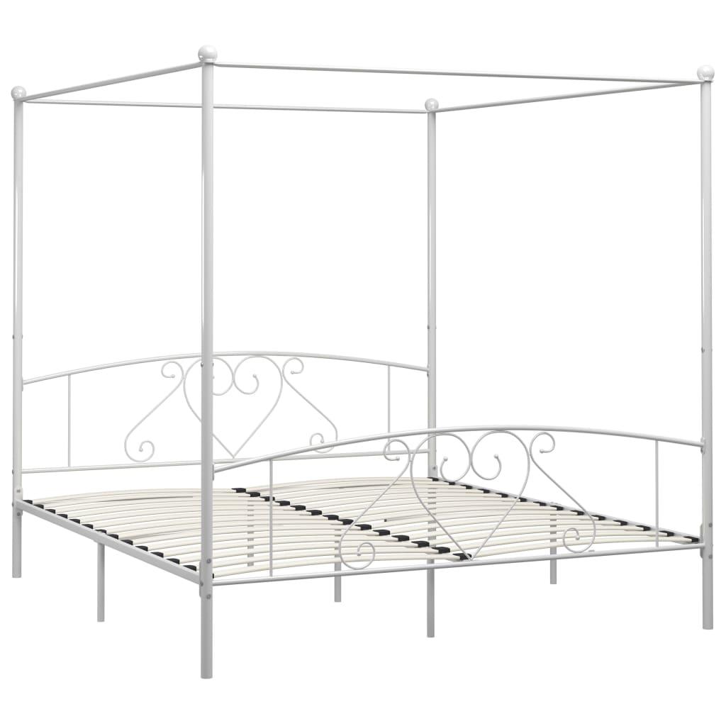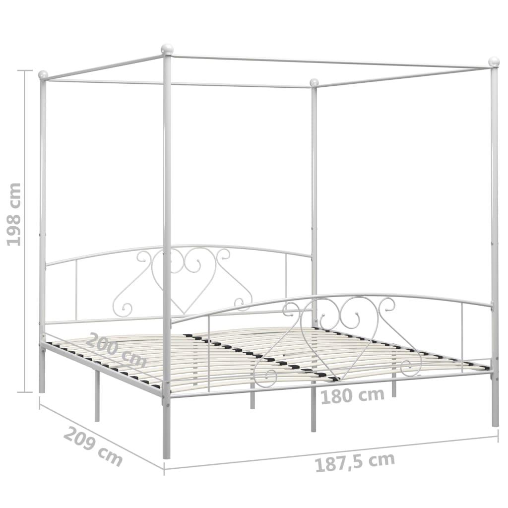 vidaXL baldahhiiniga voodiraam, valge, metall, 180 x 200 cm
