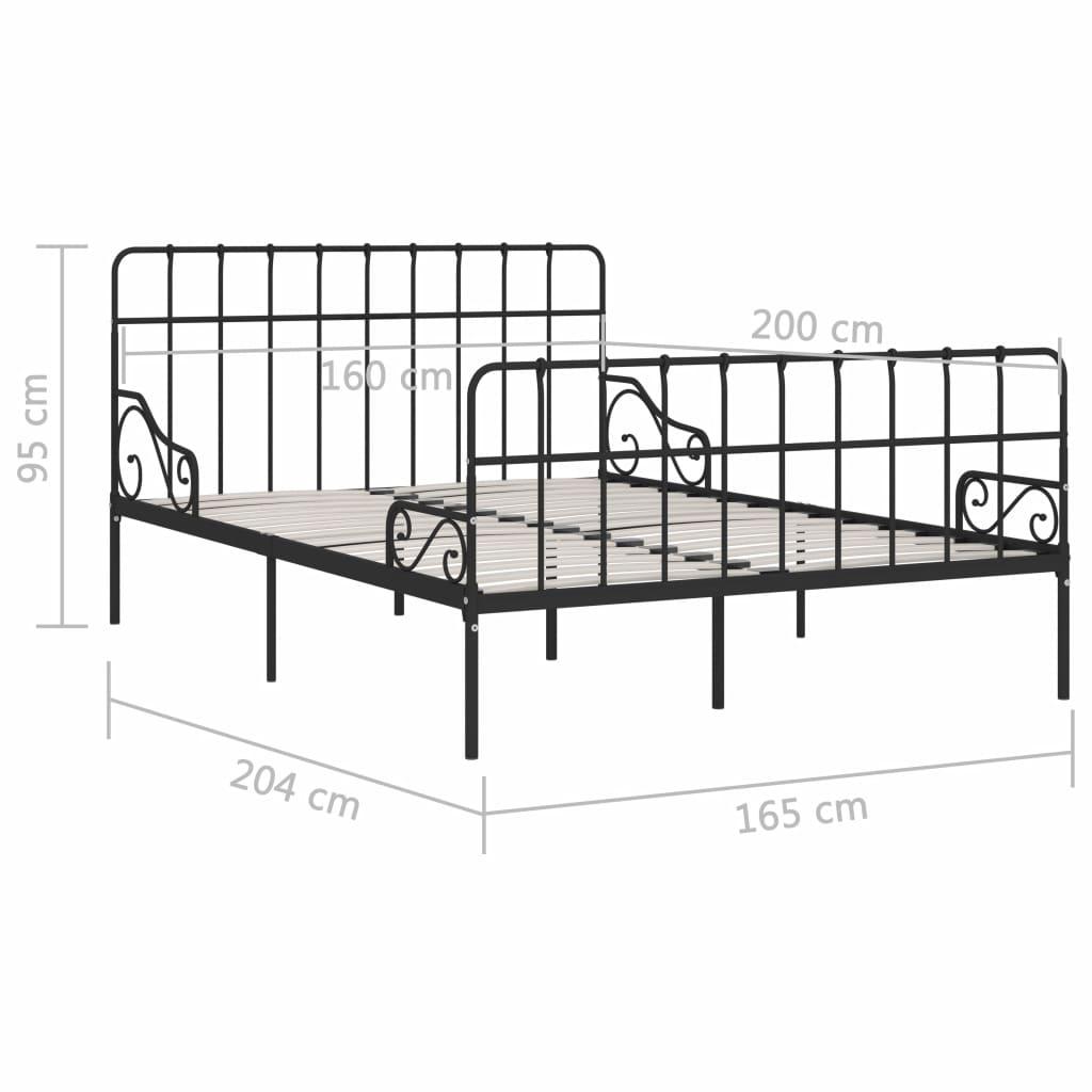 vidaXL liistudest põhjaga voodiraam, must, metall, 160 x 200 cm