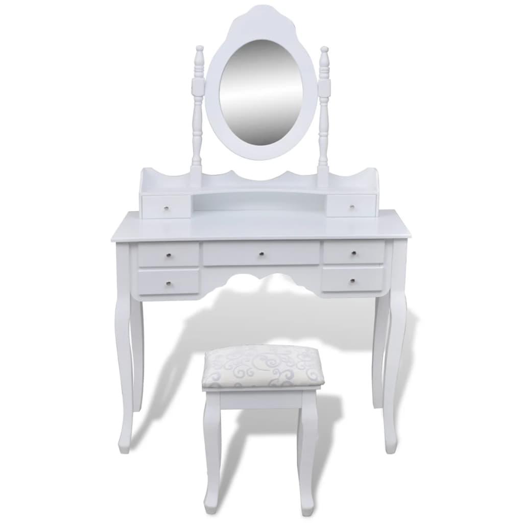 vidaXL peegli ja pingiga tualettlaud, 7 sahtlit, valge