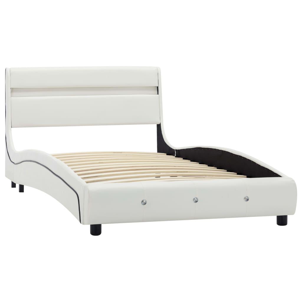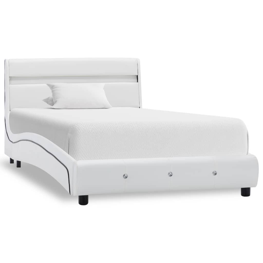 vidaXL voodiraam LEDiga, valge, kunstnahast, 90 x 200 cm