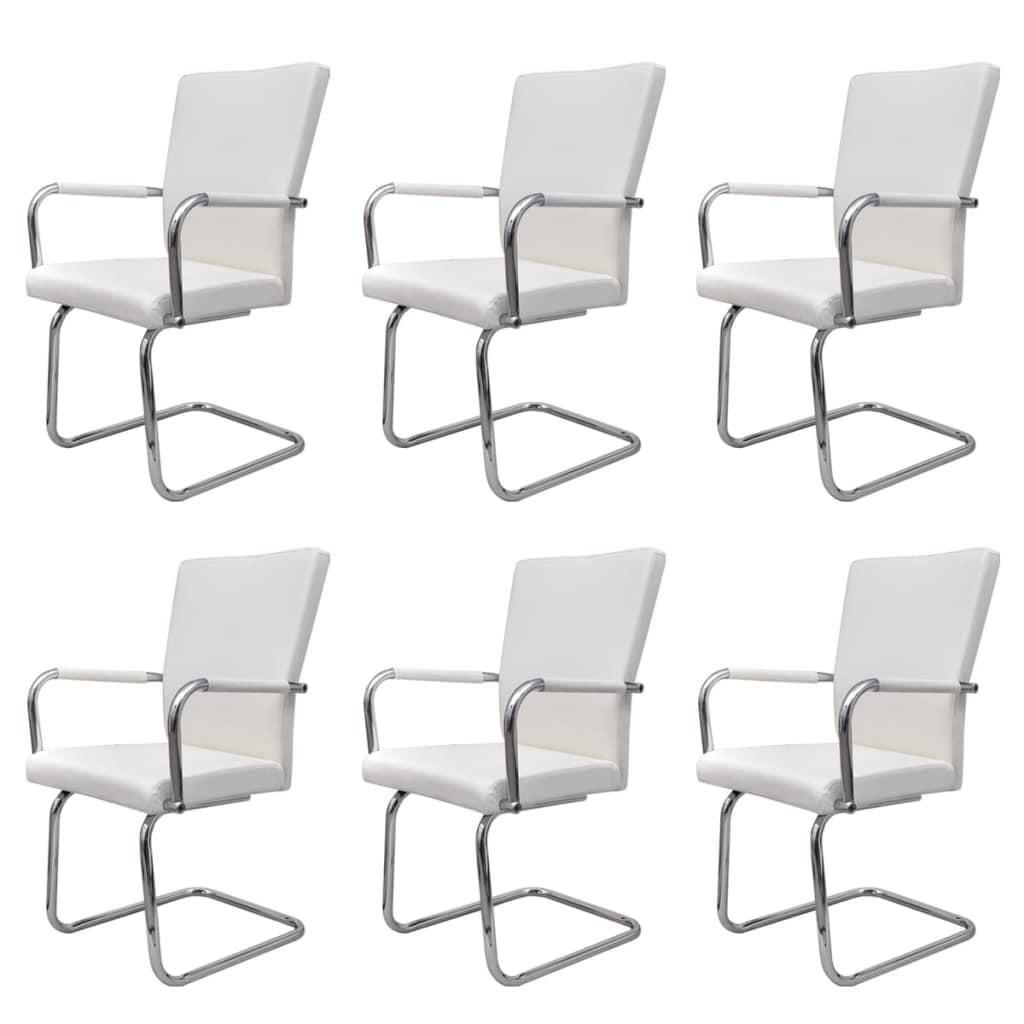vidaXL vetruvate jalgadega söögitoolid 6 tk, valge, kunstnahk