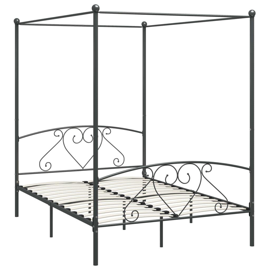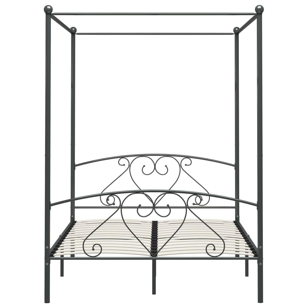 vidaXL baldahhiiniga voodiraam, hall, metall, 160 x 200 cm