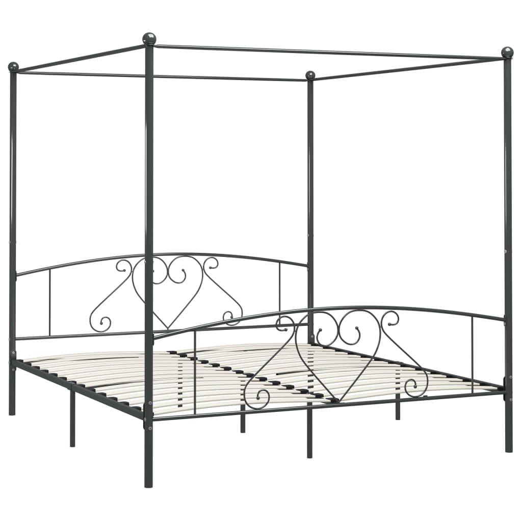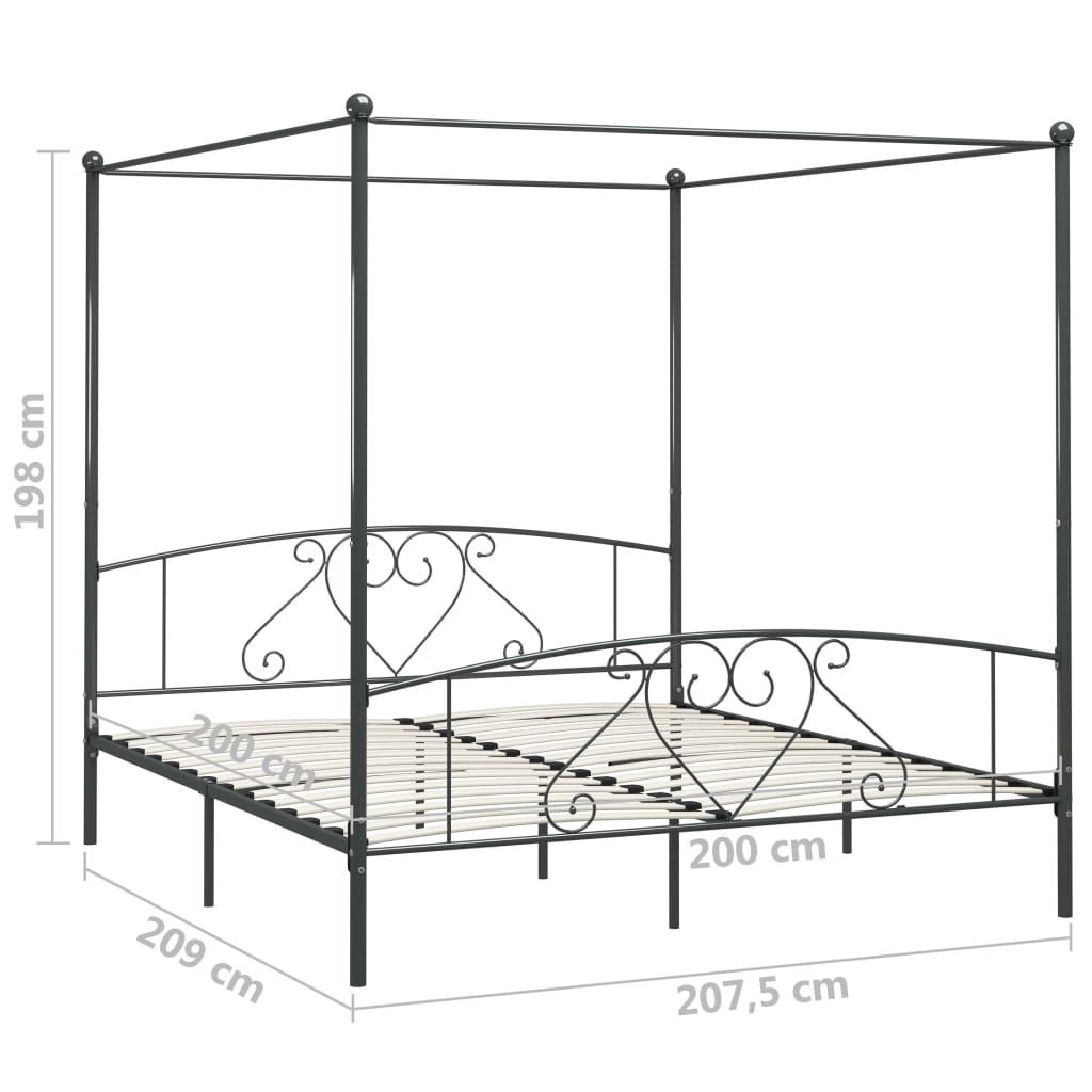 vidaXL baldahhiiniga voodiraam, hall, metall, 200 x 200 cm