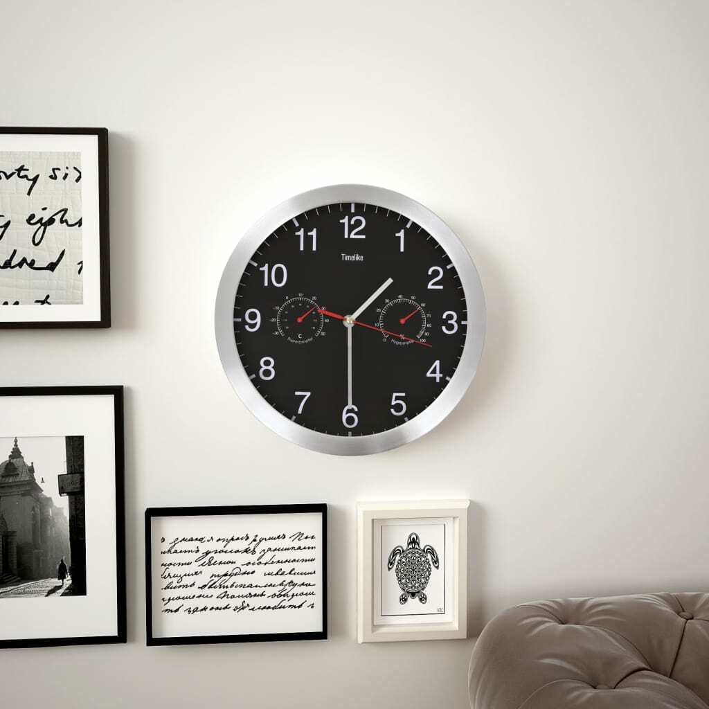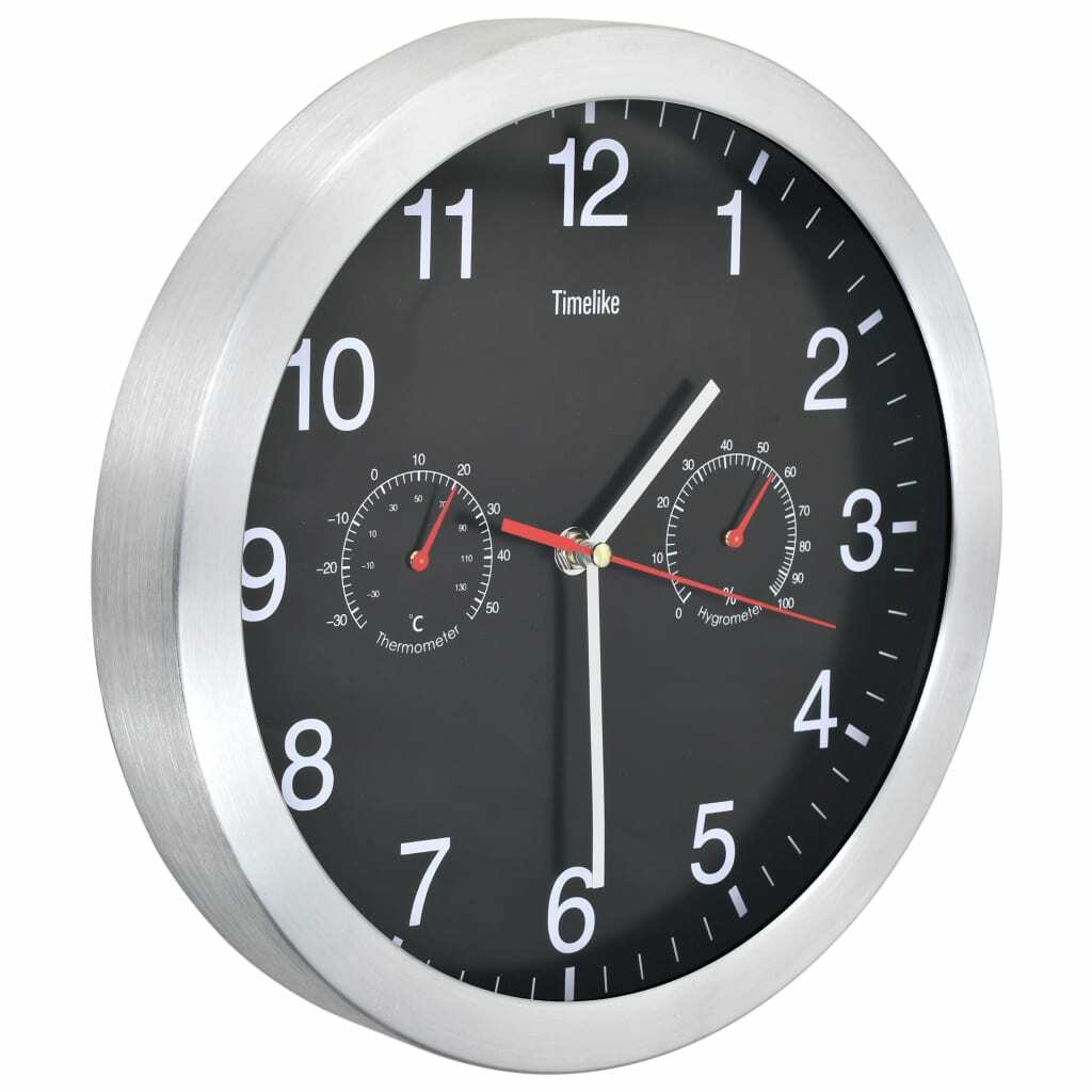 vidaXL seinakell, kvartsmehhanism, hügro- ja termomeeter, 30 cm must