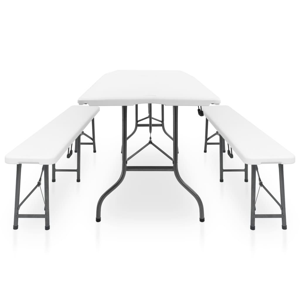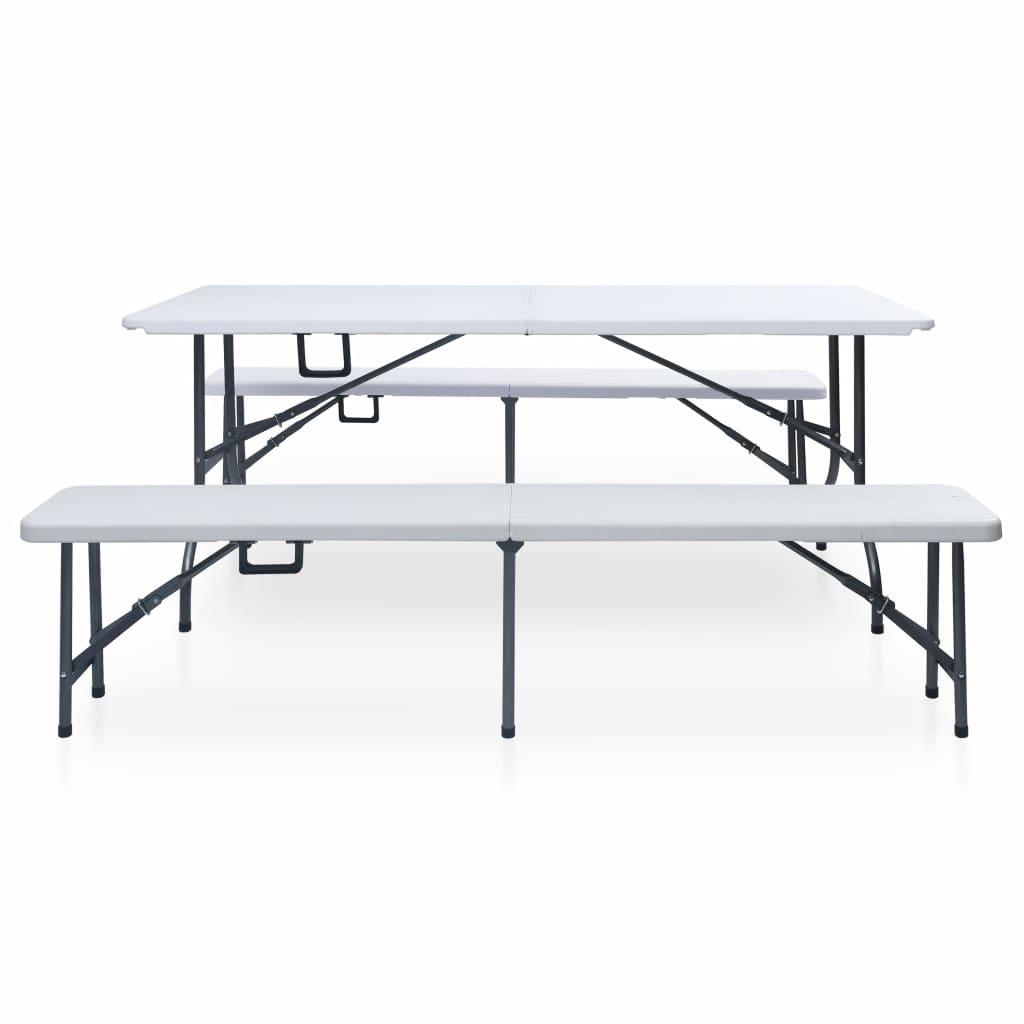 vidaXL kokkupandav aialaud 2 pingiga 180 cm, teras ja HDPE, valge