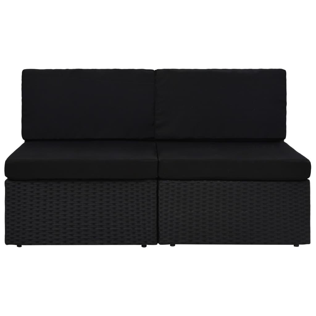 vidaXL sektsiooniline diivan, 2-kohaline, polürotang, must