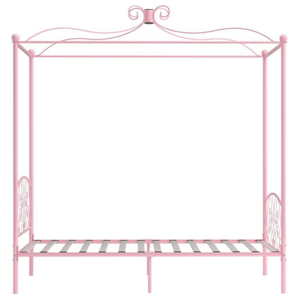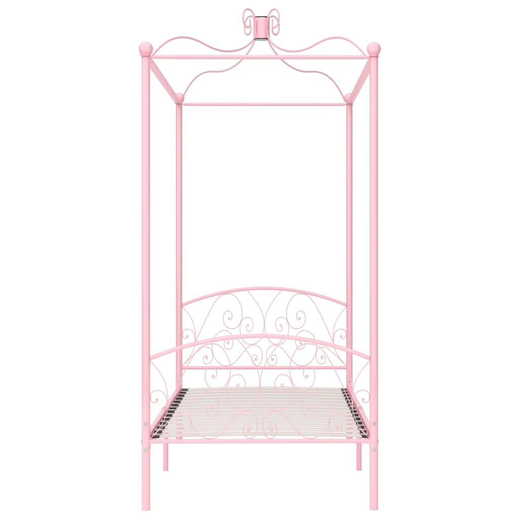 vidaXL baldahhiiniga voodiraam, roosa, metall, 90 x 200 cm