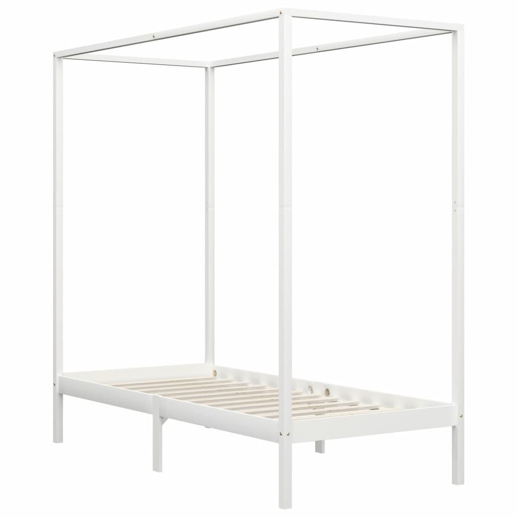 vidaXL baldahhiinvoodi raam valge, tugevast männipuidust, 90 x 200 cm