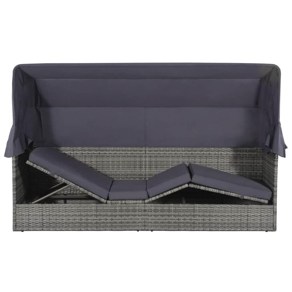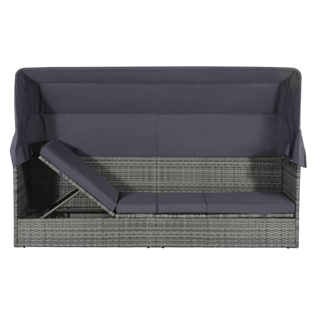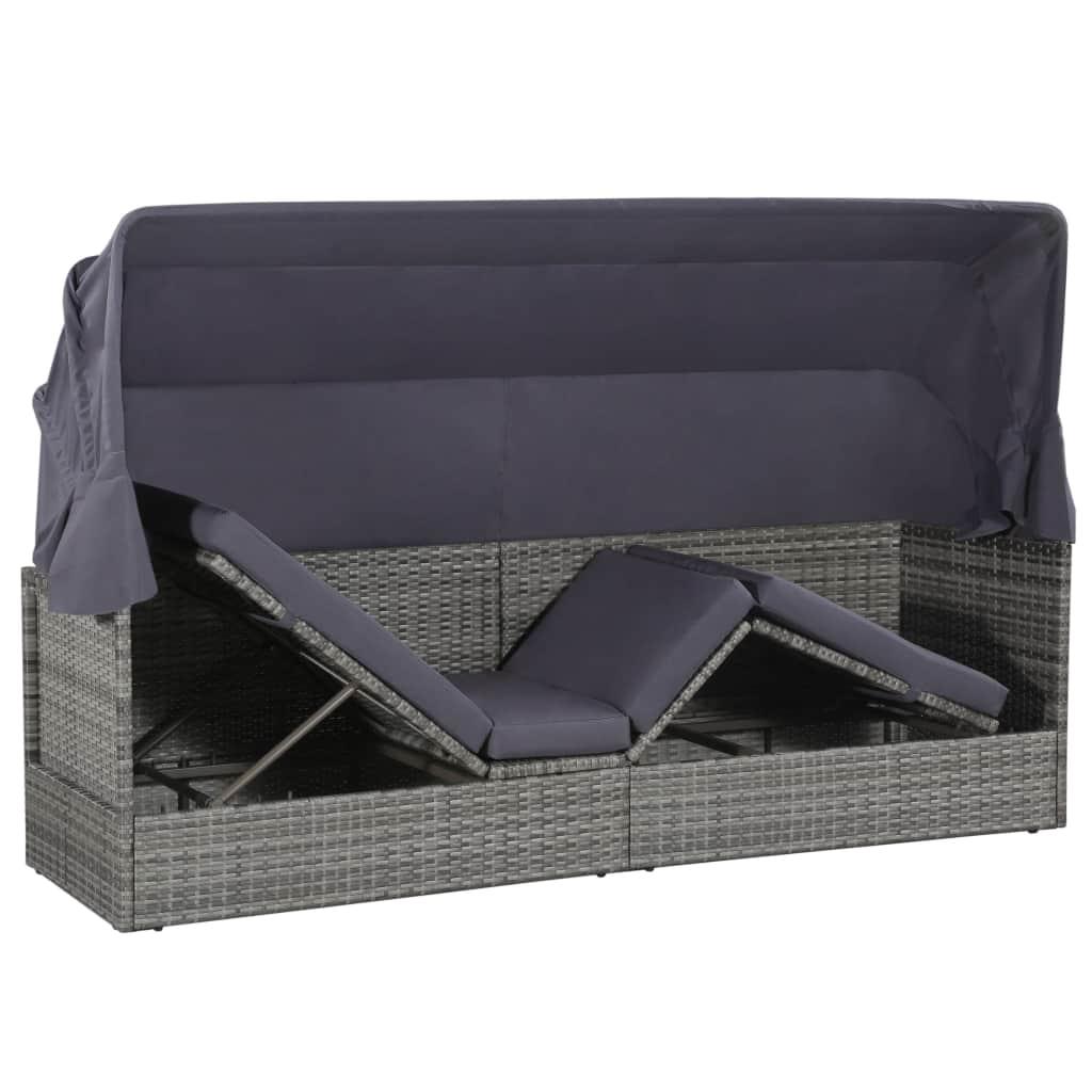 vidaXL lamamistool varikatusega, hall, 205 x 62 cm, polürotang