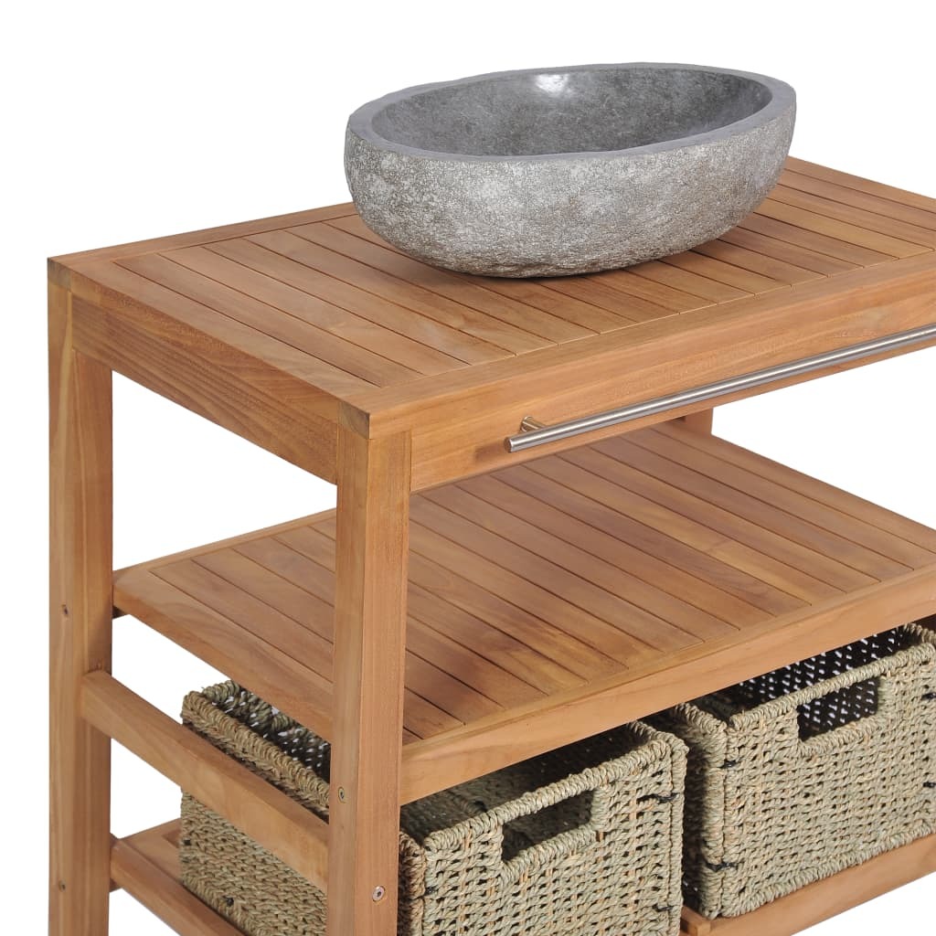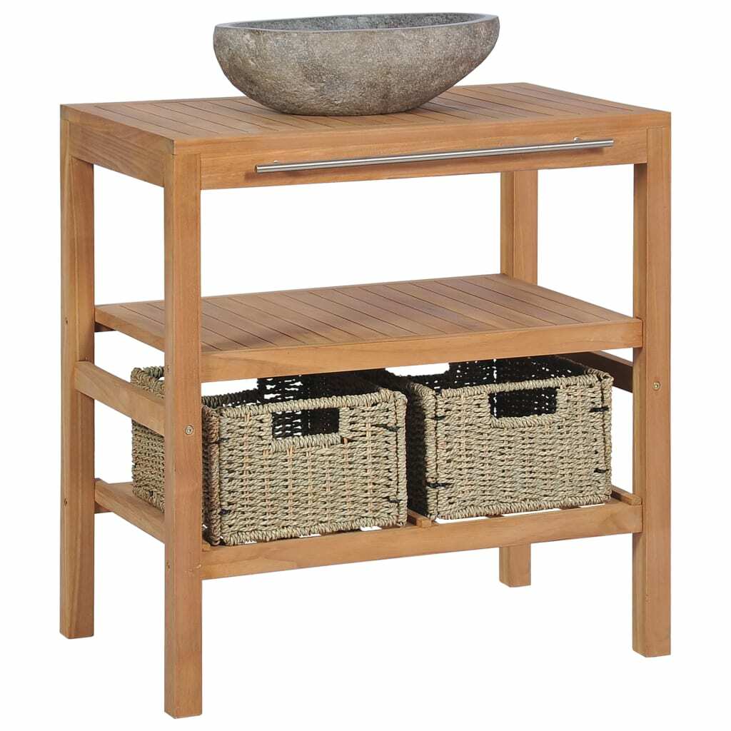 vidaXL tugevast tiikpuust vannitoakapp jõekivist valamuga