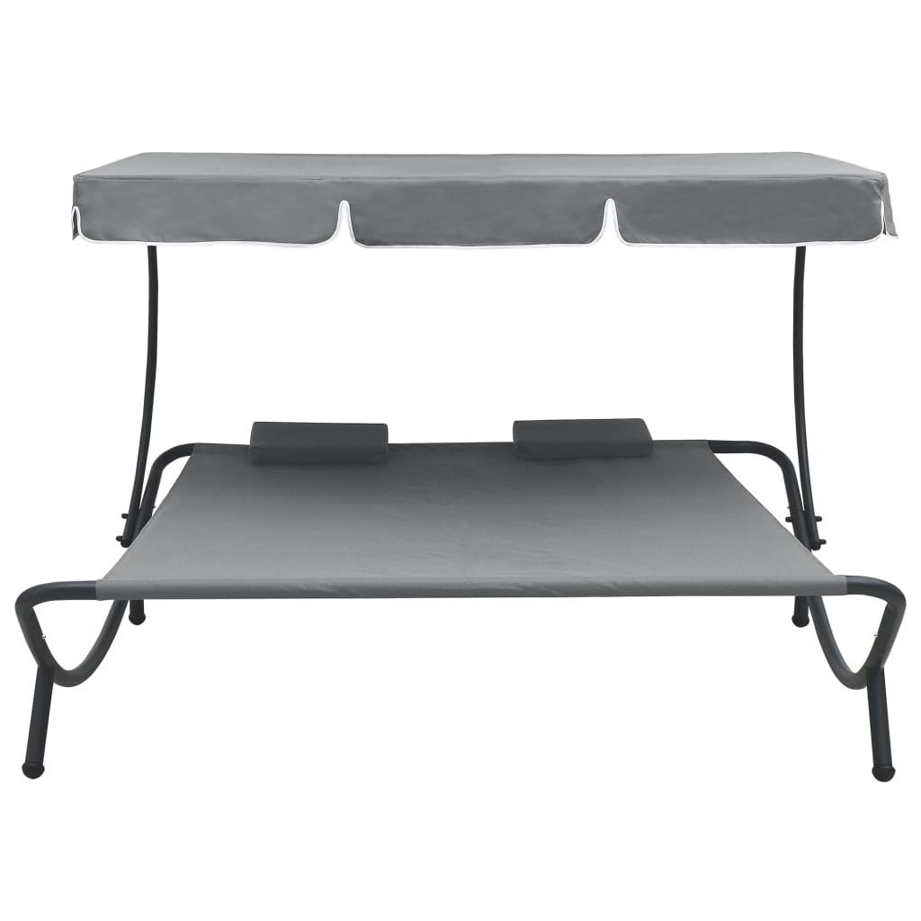 vidaXL aia lamamistool varikatuse ja patjadega, hall