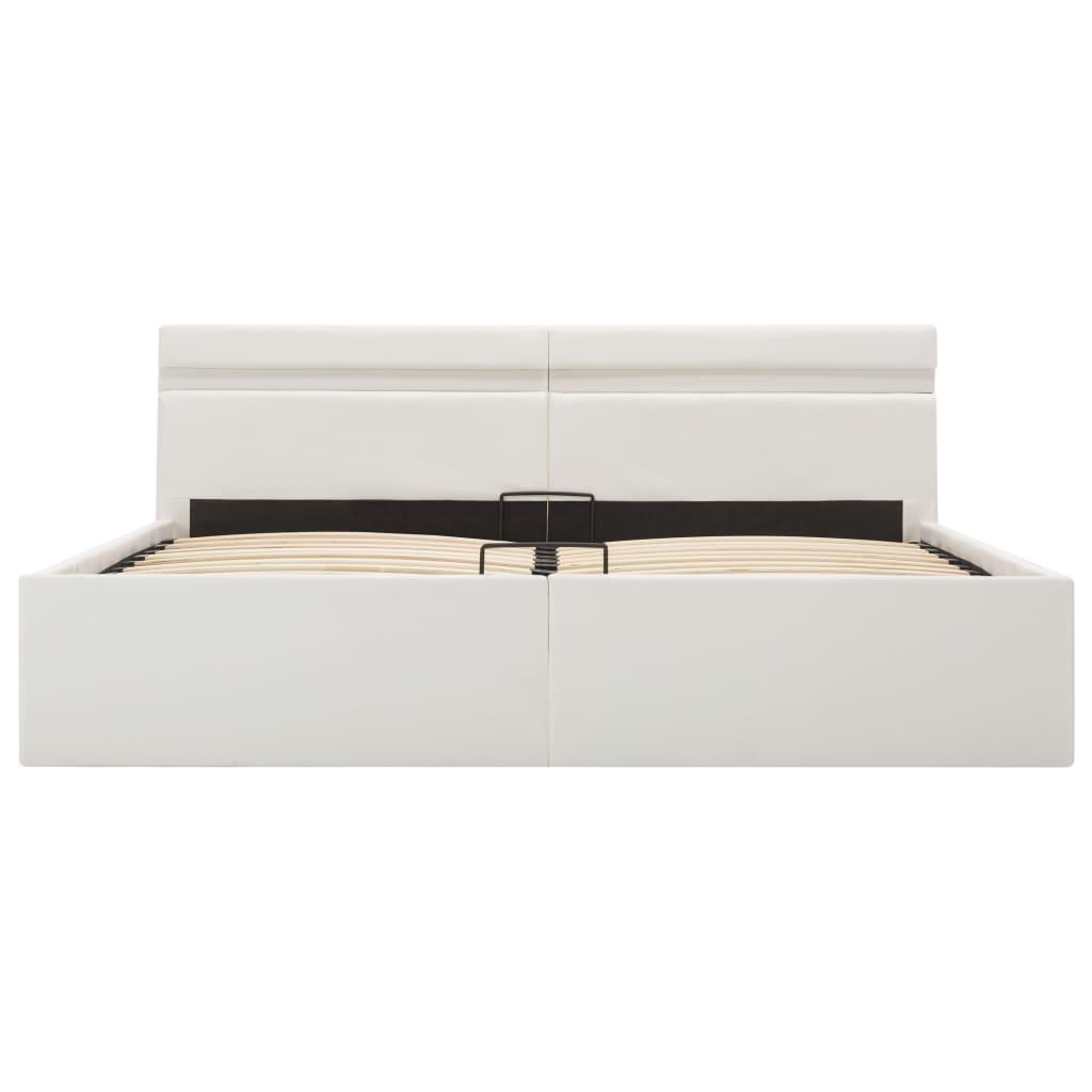 vidaXL hüdrauliline hoiukastiga voodiraam LED valge kunstnahk 160x200