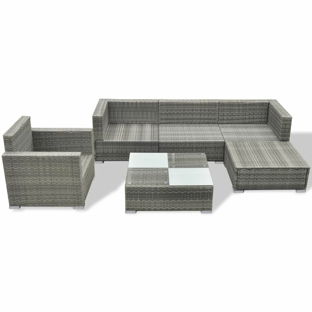 vidaXL 6-osaline aiamööblikomplekt patjadega, polürotang, hall 41879
