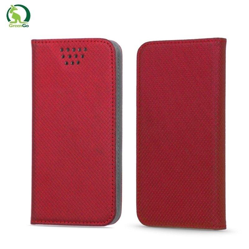 Mobiili lisaseade GreenGo Universal 4.7-5.3" LCD (75x150mm max) Smart Magnetic Fix Book Case with Slider Red