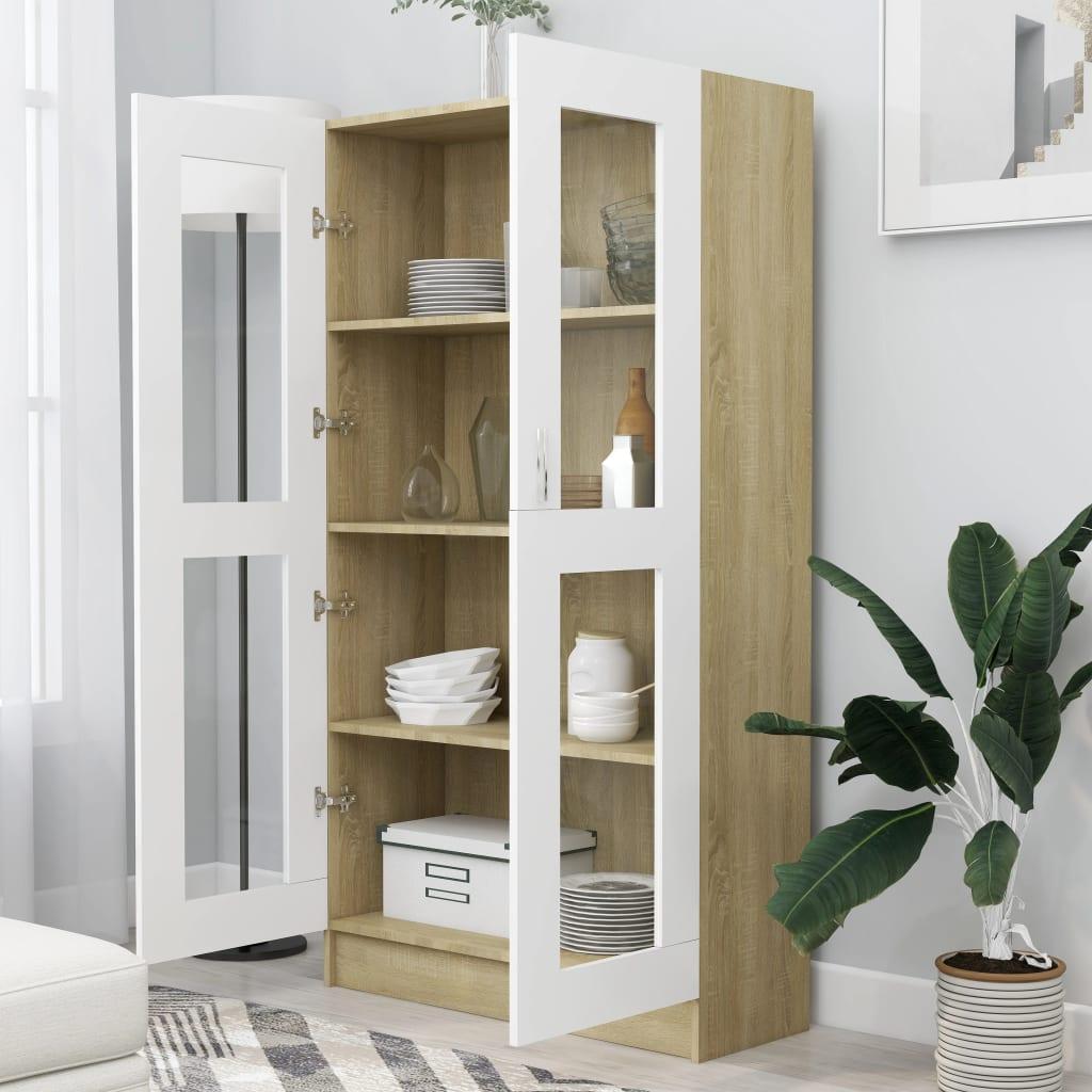 vidaXL vitriinkapp valge, Sonoma, 82,5x30,5x150 cm puitlaastplaat 802764