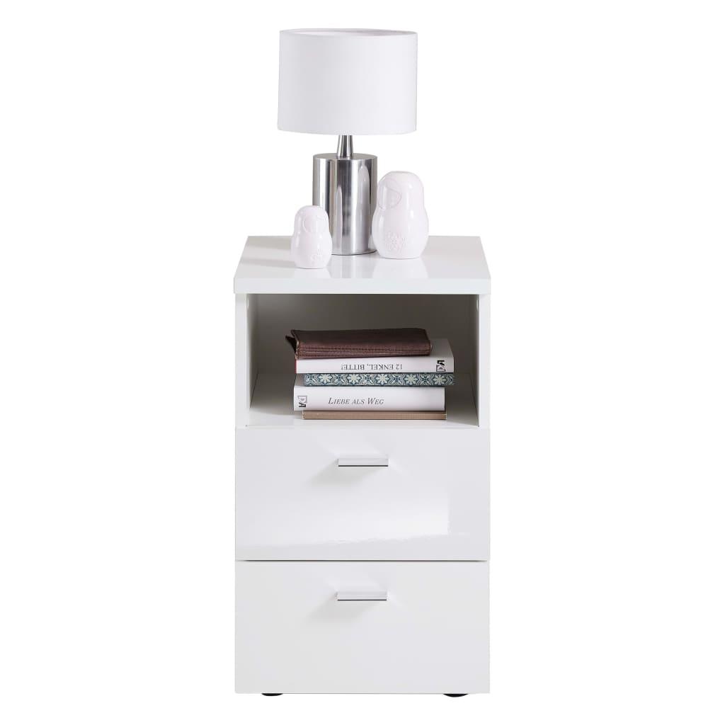 FMD öökapp kahe sahtli ja ühe riiuliga, kõrgläikega valge 429456