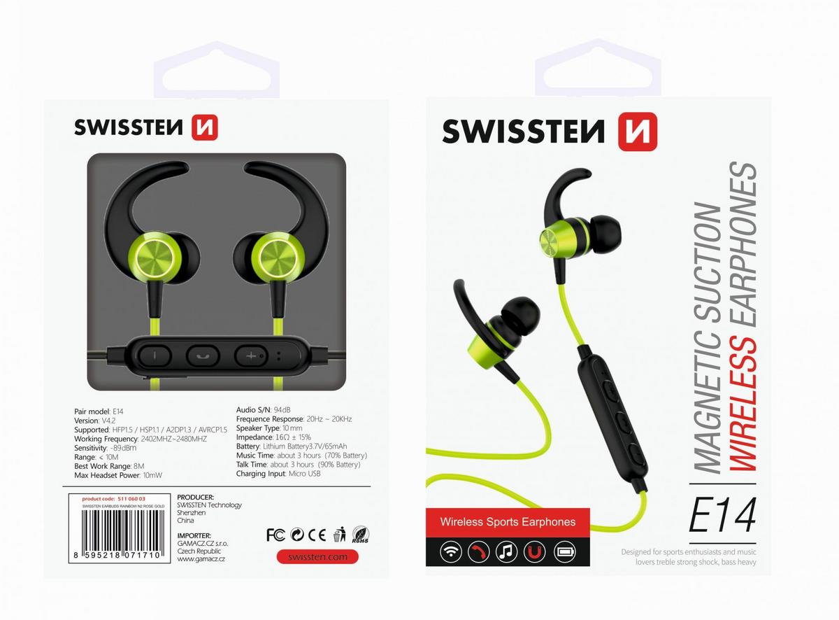 Kõrvaklapid Swissten Active Wireless Bluetooth 4.2 Green