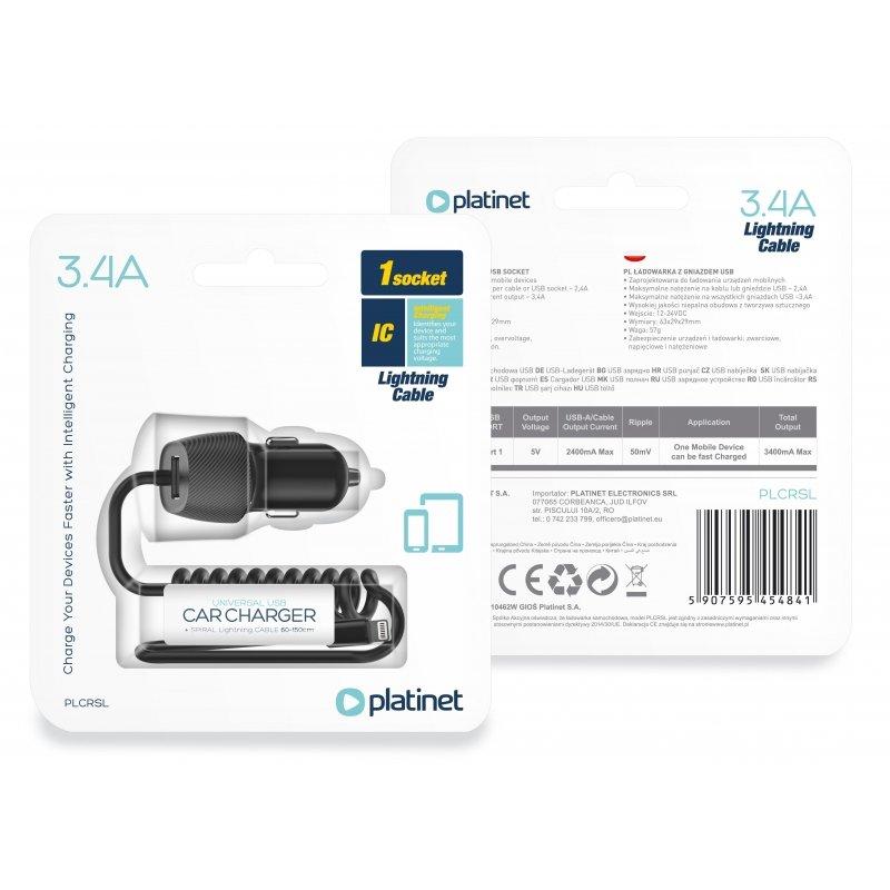Mobiili lisaseade Platinet autolaadija 3.4A USB-A + Lightning (45484)