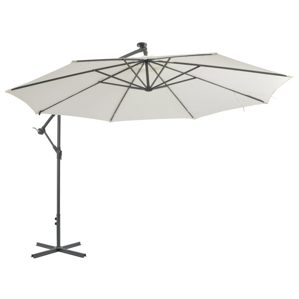 vidaXL konsooldisainiga päikesevari LED, metallpost, 350 cm liivakarva 44523