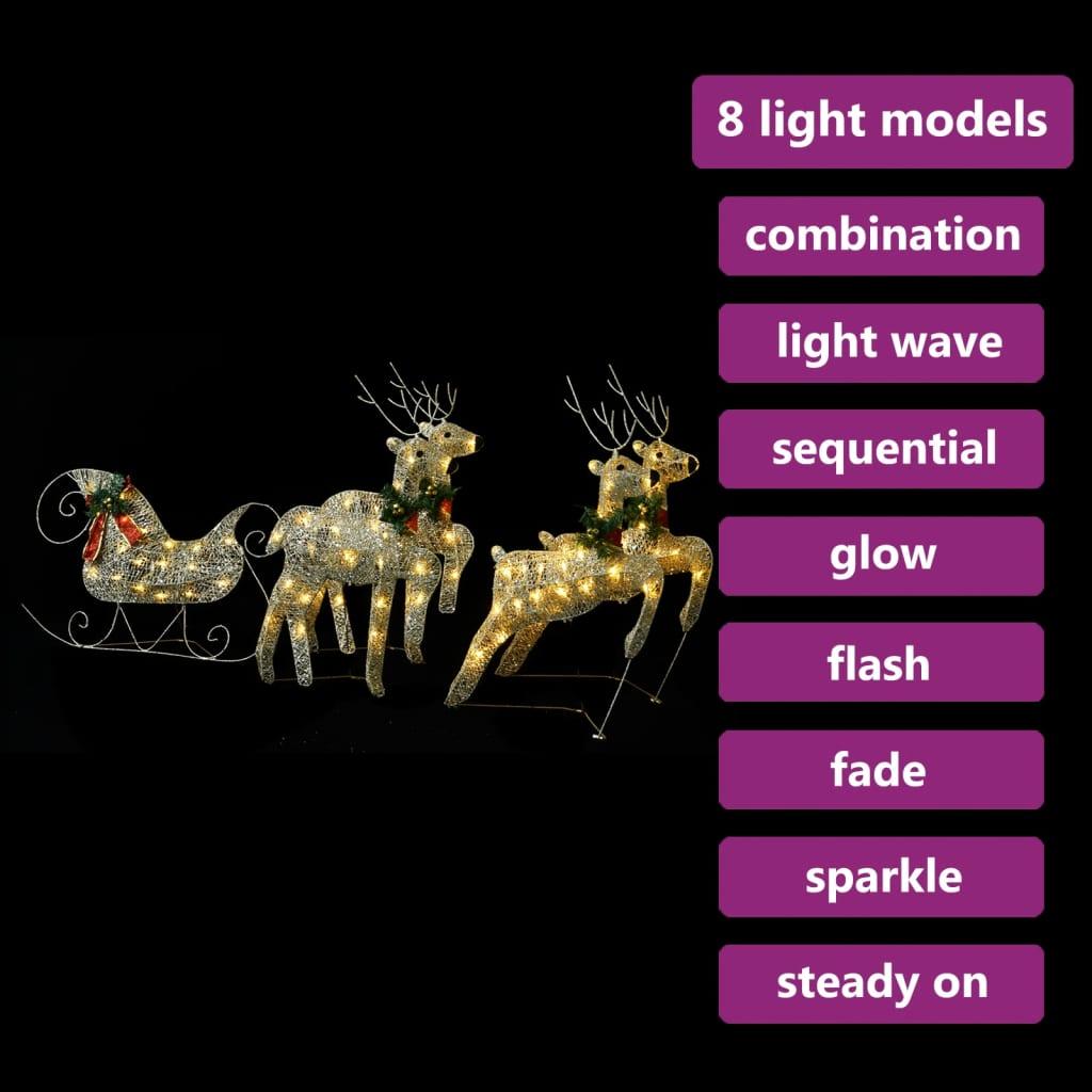 vidaXL põhjapõder saaniga, jõulukaunistus, 100 LEDi, õue, kuldne 329830